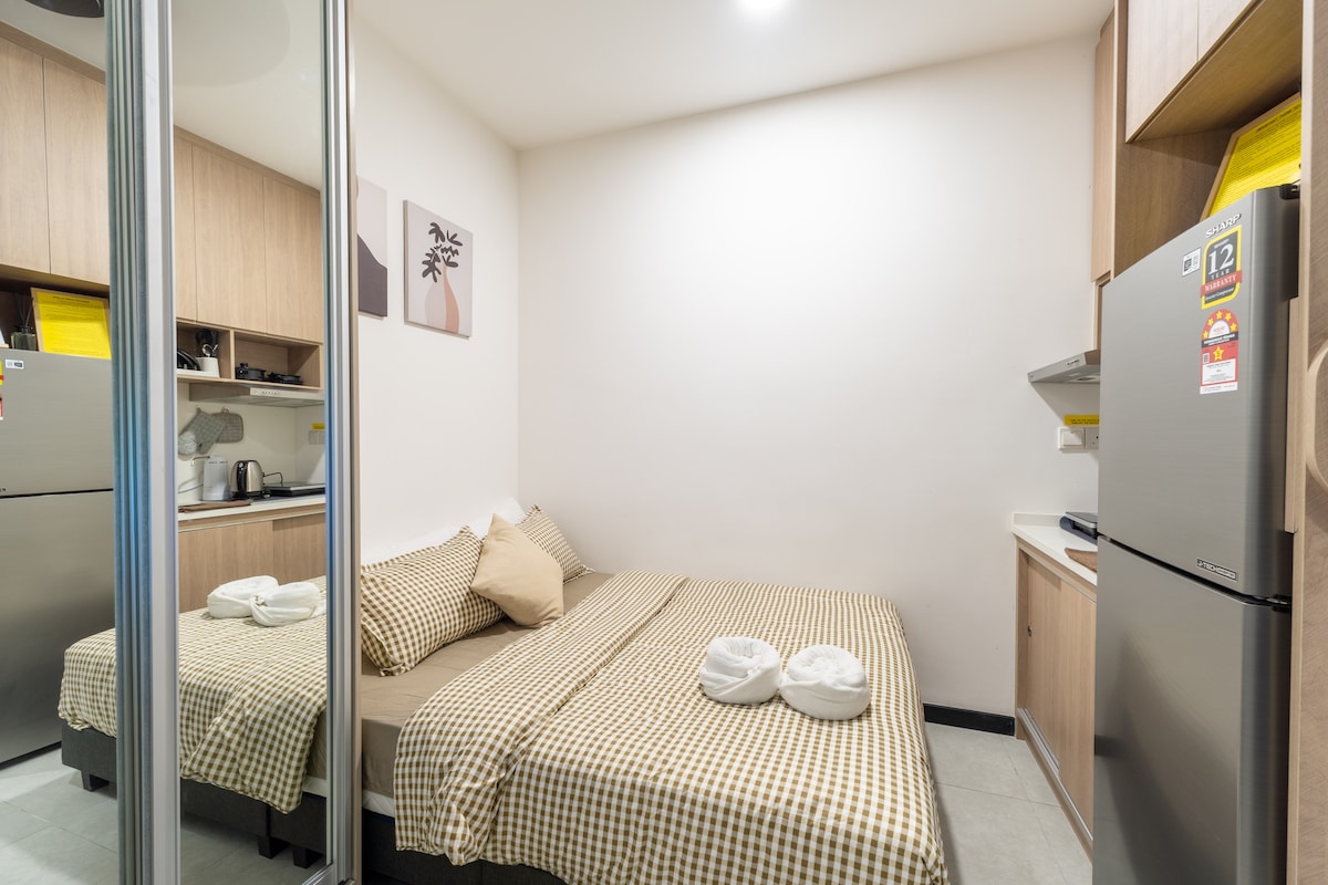 Abre las cortinas del dormitorio por la mañana para revelar una impresionante vista de la ciudad, una vista que también podrás disfrutar desde un práctico escritorio. Los relajantes tonos topo y gris mantienen una sensación sofisticada. Los detalles modernos del baño y la cocina lo convierten en un punto de partida ideal para explorar. Mi apartamento de servicio de un dormitorio de aproximadamente 900 pies cuadrados está totalmente amueblado y equipado con aire acondicionado, con sala de estar, comedor, cocina y dormitorio integrados. Sala de estar: cómodo sofá de 3 plazas, sillón reclinable y TV de pantalla plana para que los huéspedes disfruten de un lugar cómodo donde pasar su tiempo libre. Cocina: ¿Te apetece preparar tu propia comida? No te preocupes, esta cocina moderna y bien equipada tiene todo lo que quieres para preparar tu comida, ya sea para ti o para tu pareja. No te sorprendas de que incluso tenga una lavadora que viene con secadora incorporada. Comedor: una mesa de comedor sencilla y acogedora adyacente a la cocina para servir cómodamente. No dudes en preparar tu propia comida y disfrutar comiendo aquí, así como para compartir una risa y fortalecer las relaciones. Dormitorio: el lugar donde te escondes al final del día para descansar, relajarte antes de dormir. Esta espaciosa y cómoda habitación cuenta con cama tamaño king, vestidor y escritorio, TV de pantalla plana y también acceso privado a un magnífico baño que te ofrecerá un entorno de descanso inolvidable. Por último, pero no menos importante, se proporciona acceso gratuito a internet por wifi para que los huéspedes lo utilicen en mi apartamento y puedan mantenerse en contacto con amigos y familiares o encargarse de sus negocios en cualquier momento. Las instalaciones comunes del Sky Gym, ubicadas en el piso 39, la piscina infinita, las salas de juegos y el parque infantil en el piso 5 que funcionan todos los días de 7:00 a 22:00 h. Pregunta todo lo que quieras. El apartamento se encuentra en el Fraser Residence Hotel, en el centro de Kuala Lumpur. Está a 800 metros de las Torres Petronas y del centro comercial Suria KLCC. En cuanto a la comodidad, la tienda de comestibles está a solo un minuto, el transporte público no solo se puede llegar en unos minutos a pie como la estación de monorraíl Bukit Nanas (5 minutos) y la estación de tren ligero Dang Wangi (7 minutos), sino que los huéspedes también pueden llegar a pie al cercano Centro de Turismo de Malasia (7 minutos), Torres Petronas (18 minutos), Hard Rock Café (8 minutos), Torre de Kuala Lumpur (29 minutos) y muchas otras atracciones. También hay un servicio de autobús público (GOKL City Bus) que ofrece a los pasajeros viajes gratuitos para los viajeros dentro del distrito central de negocios de Kuala Lumpur. Te invitamos a viajar a algunos de los lugares populares como Pavillion, Bukit Bintang, Petronas Twin Tower, Pasar Seni y muchos más... Ofrecemos limpieza gratuita (una vez a la semana) a aquellos que se alojen durante 7 noches o más, que incluye cambio de sábanas, toallas y limpieza básica. (Bajo petición, con un día de antelación) El apartamento se encuentra en 188 Suites en el centro de Kuala Lumpur. Está a 800 metros de las Torres Petronas y del centro comercial Suria KLCC.
