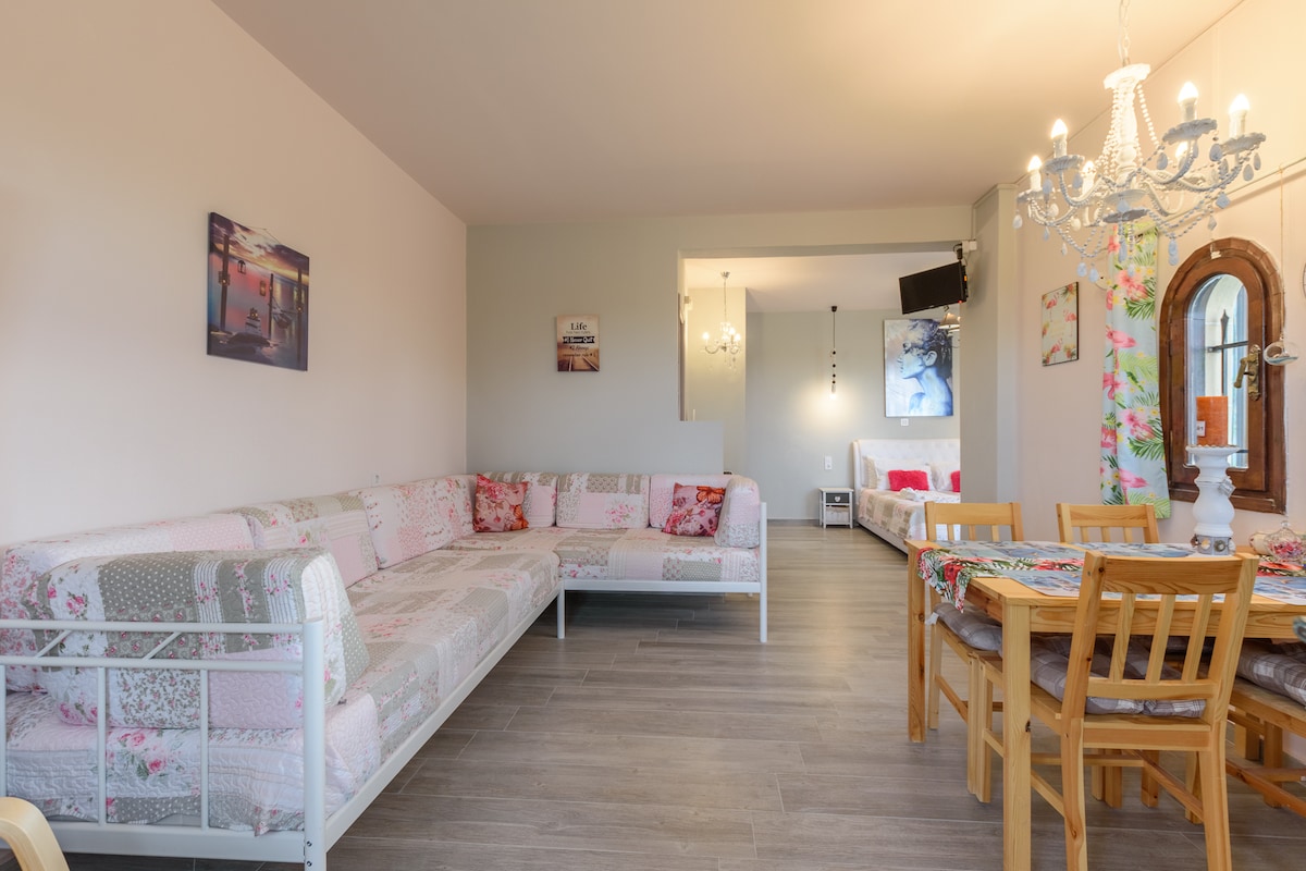 Una suite moderna y minimalista que combina el estilo de lujo de los muebles para hacer de su estancia una experiencia única en Stalis. A solo 1 minuto a pie de la playa y la calle principal donde existen todas las tiendas y restaurantes. Esta suite de un dormitorio consta de una cama tamaño king con colchón anatómico para un sueño relajante y profundo para su comodidad. Un gran sofá, un enorme televisor inteligente de Netflix para tu entretenimiento. Cocina moderna y baño totalmente equipado con todos los servicios necesarios para cubrir todas tus necesidades.