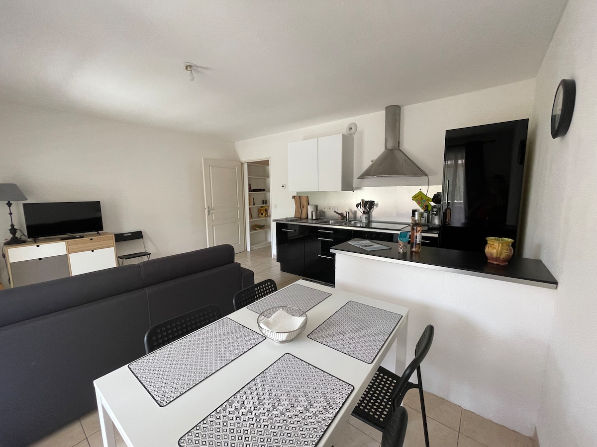 Bienvenidos a nuestra casa de huéspedes de 32 m2, idealmente situada al pie del Luberon, en el corazón del pueblo de Mallemort de Provence. Estará cerca (a pie) del centro y de sus numerosas tiendas y festividades de verano. ¡La casa ha sido totalmente equipada para que se sienta bien! Tendrá una terraza y acceso a la piscina (segura si hay niños pequeños), ¡tobogán, trampolín y juegos de piscina están disponibles! ¿Pasear o descansar? ¡Usted elige!