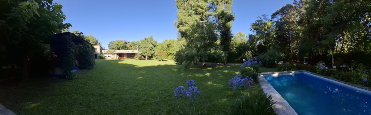Disfrutar de la naturaleza y la tranquilidad de la comodidad de 2 casas rústicas estilo campo casi pegadas y refaccionadas con gran parque, pileta, quincho, parrillas, discos, horno de barro y un entorno maravilloso. Especial para vivir el afuera ! Barrio residencial. Ambiente familiar. No fiestas ni música fuerte. Atendido por sus dueños que viven a la par en otra casa.