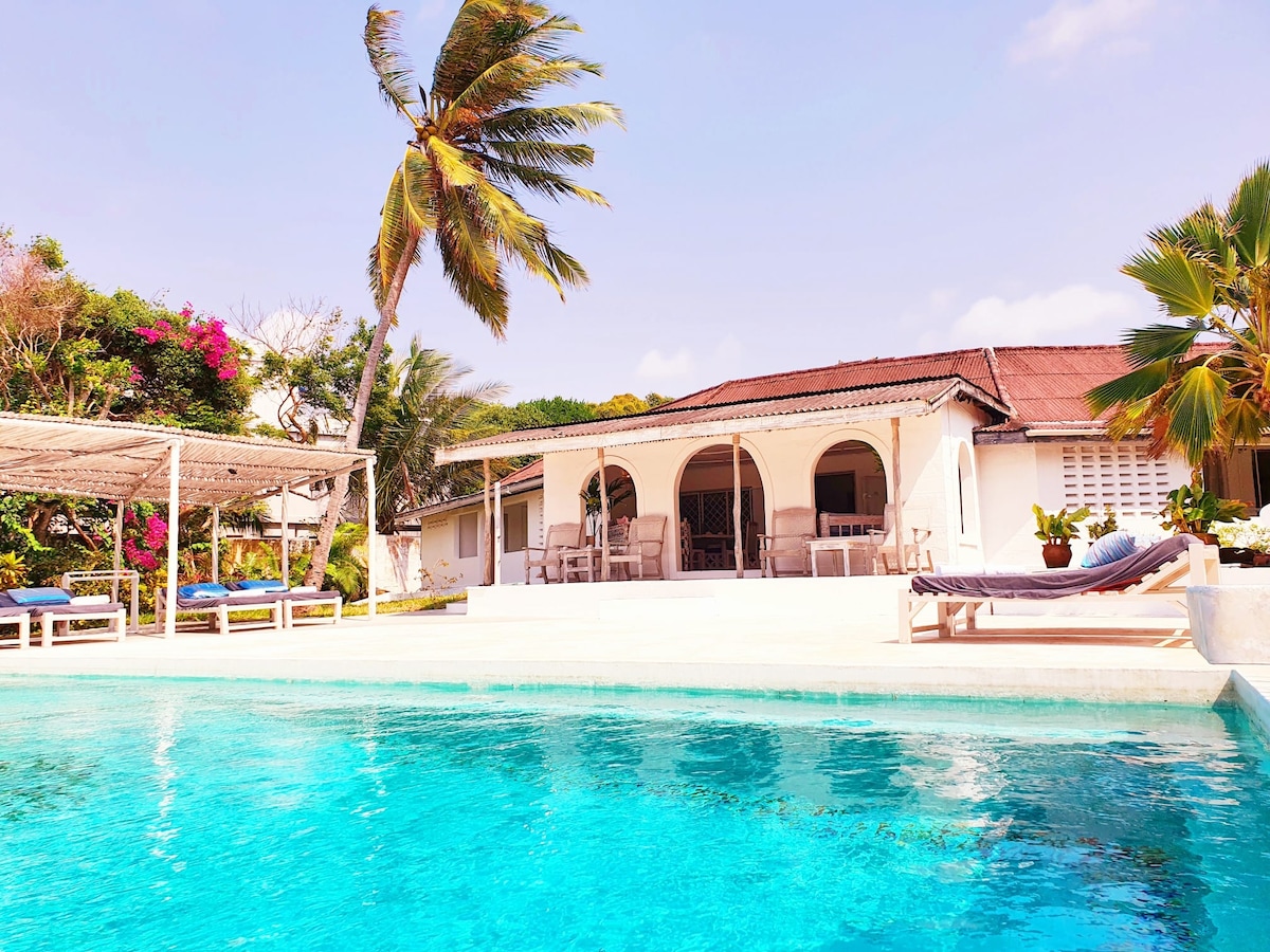 CHEF, AMA DE LLAVES Y SERVICIO DE LIMPIEZA INCLUIDOS Exclusiva villa con personal dedicado, rodeada de vegetación a solo 400 metros del mar de Kenia y el arrecife de coral. Distribuido en dos pisos, cuenta con una piscina con solárium, tumbonas y un cenador para cenar al aire libre. 3 amplios dormitorios tamaño king, mosquiteros, baños privados, ventiladores y armarios. Cocina totalmente equipada, estacionamiento y autosuficiencia en agua, electricidad y gas. El personal cálido y profesional garantiza una estancia inolvidable.