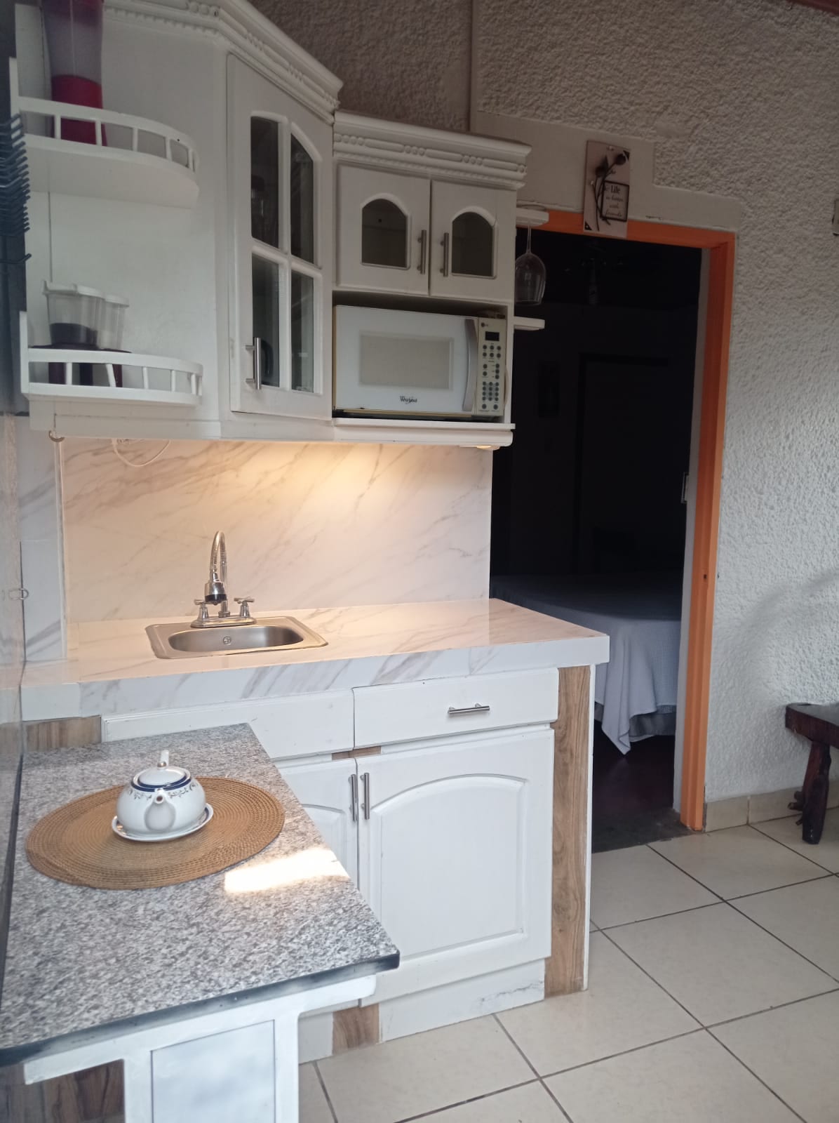 El SOHO, en Managua, es pequeño pero bello, diseñado para tu comodidad y tranquilidad espiritual. Pensado para alojar a dos personas tiene lo indispensable para hacerte más placentera fácil tu estadía: aire acondicionado , baño independiente con agua caliente, cama queen size, refrigeradora, microondas, tostadora de pan, TV, cafetera. Y si necesitas algo más te lo facilitamos. Por supuesto que tiene entrada independiente, parqueo frente a la puerta y vigilancia privada las 24 horas.