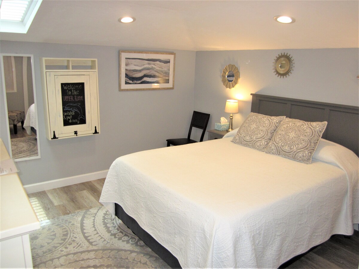 The Upper Room is a private and quiet loft with kitchenette and bathroom. Located in the upstairs of a detached garage. Queen size bed with memory foam topper insures a great night's sleep. There is a drop down Murphy Desk for eating or workspace. Kitchenette has under cabinet fridge / freezer, coffee maker and microwave. Outside sitting area & gas grill. Target, grocery stores, many restaurants located within walking distance. 2 miles to Benderson Park & the UTC Mall. 30 mins to beaches.