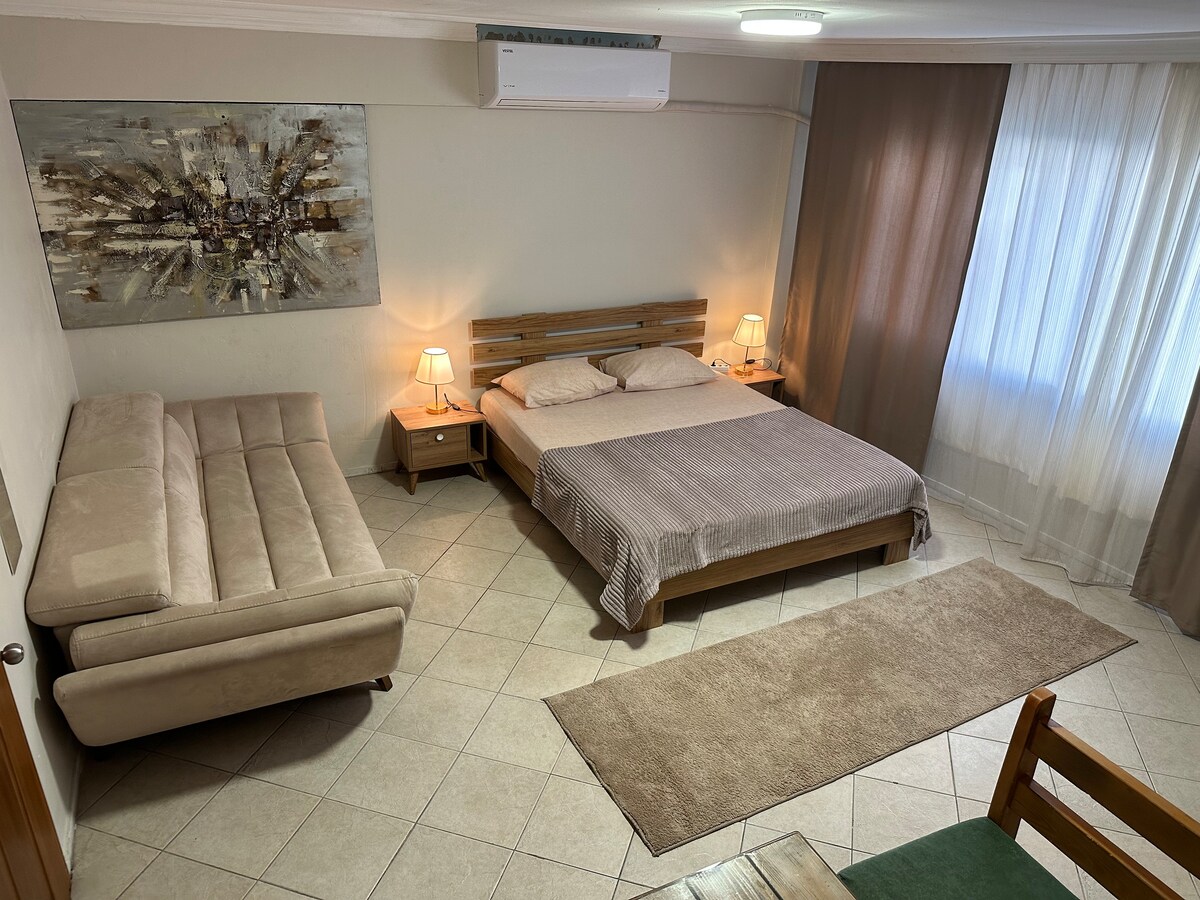 Explora las vibrantes calles de Izmir que conducen al mar, prometiendo una variedad de entretenimiento y experiencias únicas a cada paso. Nuestro apartamento céntrico ofrece fácil acceso a los encantos de la ciudad, lo que te permite crear recuerdos inolvidables. Con un diseño de interiores cuidadosamente seleccionado, este alojamiento ofrece comodidad y una sensación de hogar. Reserva ahora y abraza el esplendor de Esmirna en un entorno acogedor.