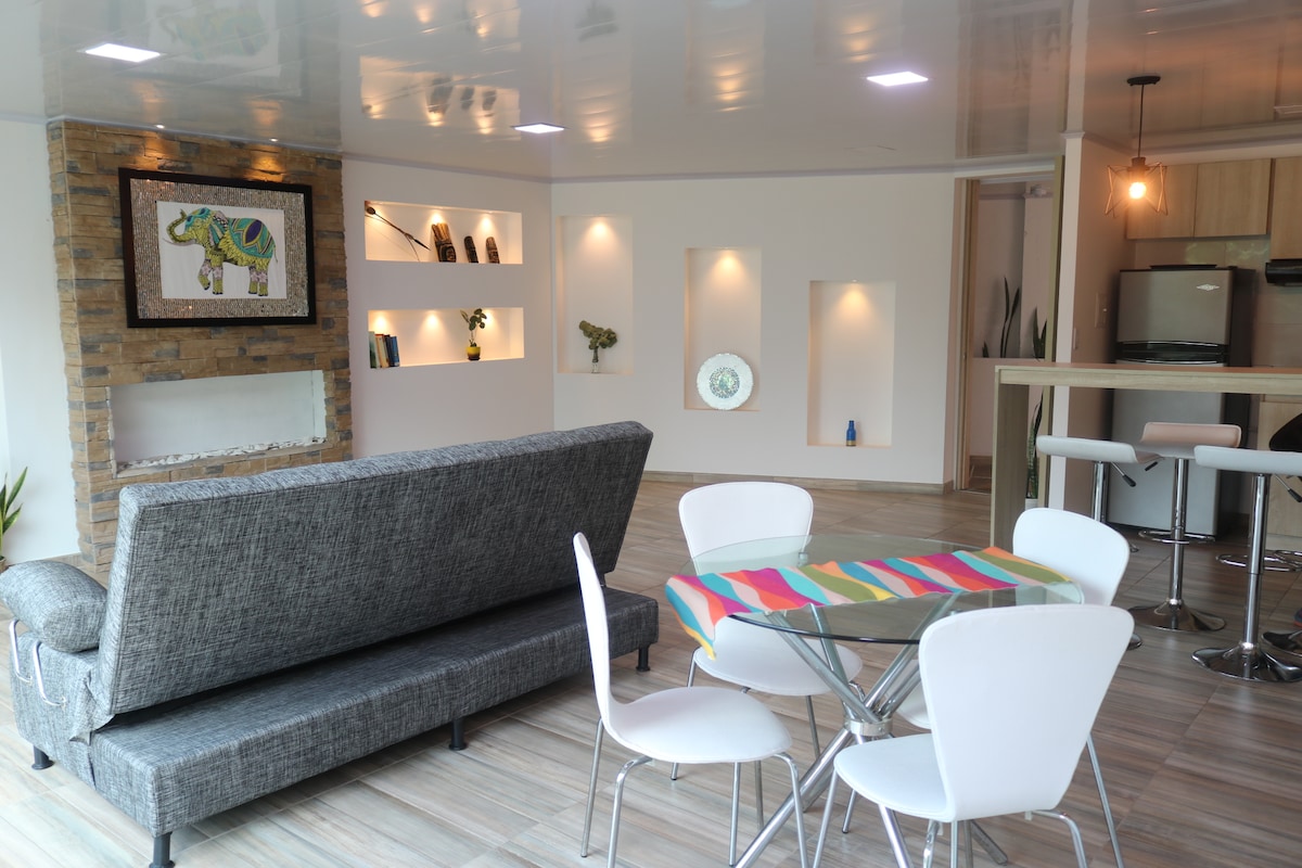 Relájate en este espacio tan tranquilo, elegante e inspirador, apartamento 202 perfecto para pasar tiempo en pareja, familia, amigos ó estar a solas. Siéntate en el sofá y disfruta del hermoso paisaje y bellas aves que rodea este espacio, es un lugar excelente para estancias cortas ó largas y trabajar muy cómodamente desde aquí tú hogar. Ubicado en uno de los barrios más tranquilos de la ciudad, muy cerca al centro y otros sitios turísticos.