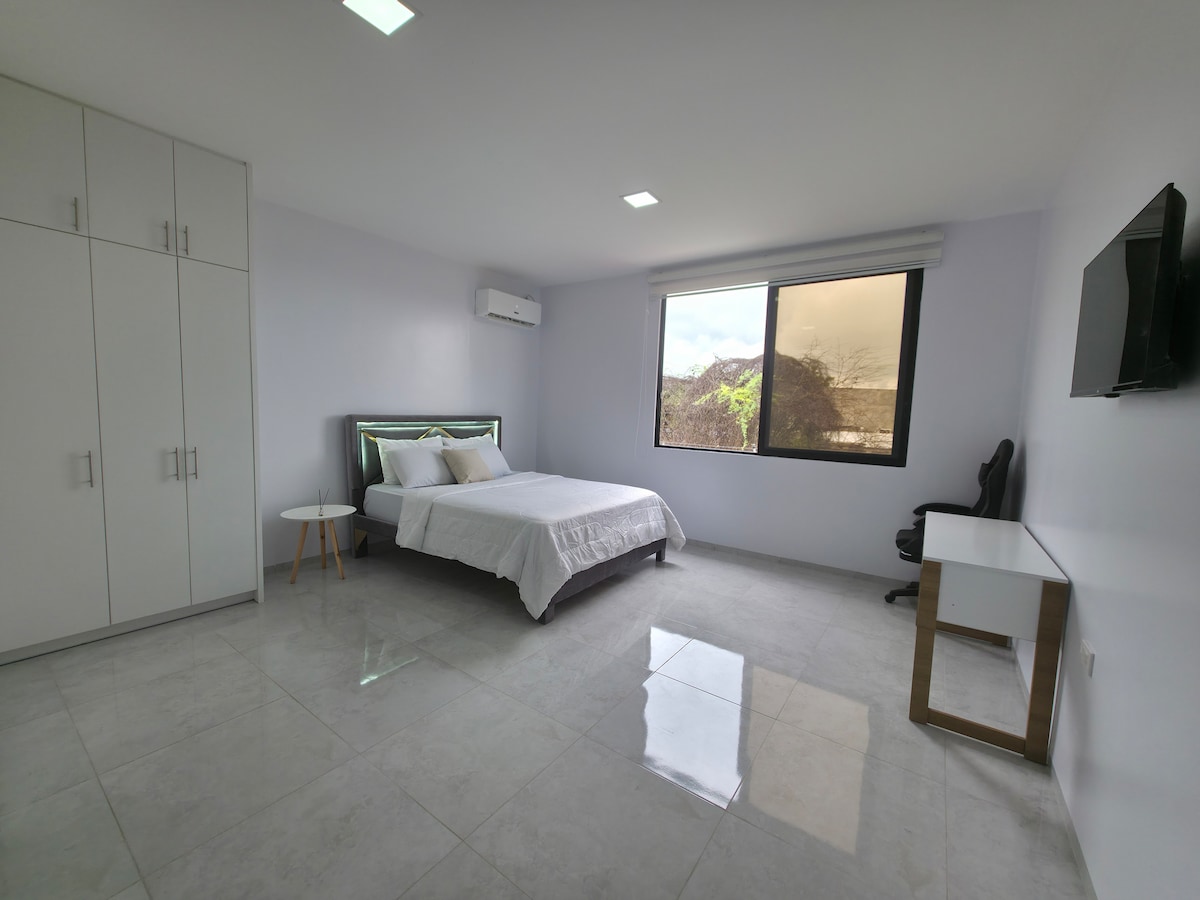 - Disfruta Manta desde este moderno y cómodo departamento 🌊. - Ubicado cerca del mar, es ideal para descanso o trabajo. Cuenta con 2 habitaciones, 2.5 baños, cocina equipada, WiFi rápido 📶 y aire acondicionado ❄️. - Capacidad para 5 huéspedes. - Acceso a piscina 🏊 y áreas comunes. Zona segura, cerca de restaurantes y comercios. - Perfecto para una estadía tranquila, confortable y con todo lo necesario para sentirte como en casa.