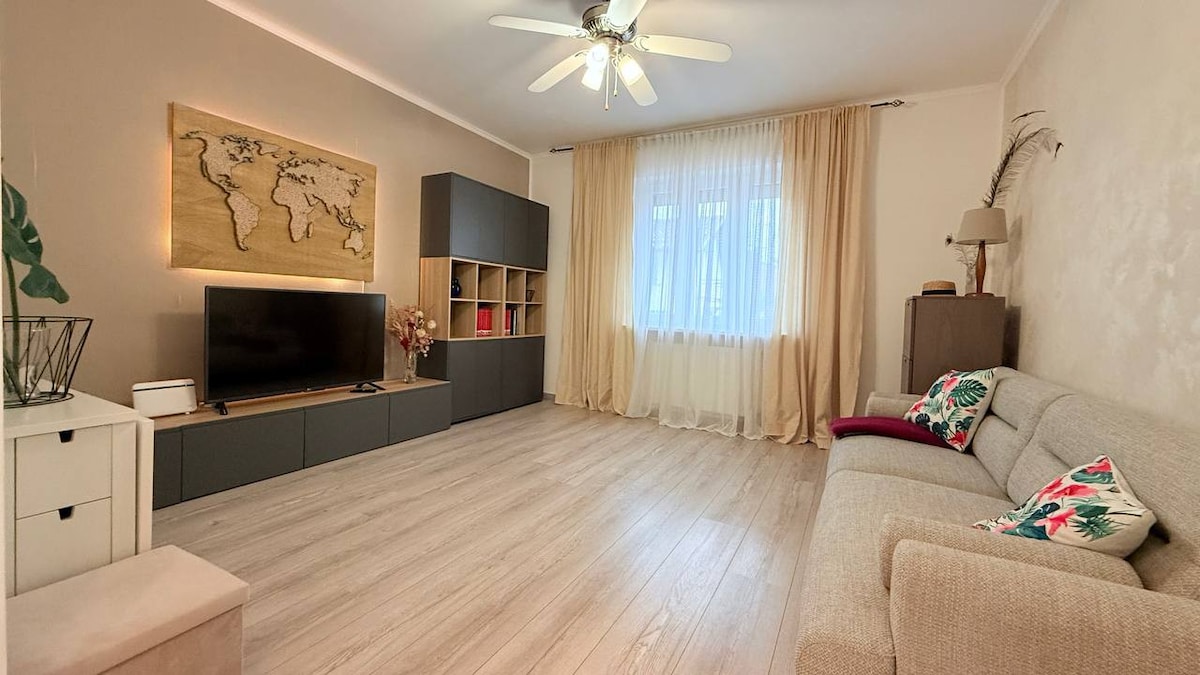 Apartamento situado en una zona tranquila, con un parque adyacente, pero con todos los servicios cerca. El apartamento consta de un dormitorio doble y un sofá cama también doble. Ideal para excursiones por los montes friulanos y eslovenos para sumergirse en la naturaleza y apreciar la cultura culinaria de la zona, o para viajes de negocios a las grandes industrias ubicadas a pocos kilómetros. Gracias a un televisor inteligente de 55" con Prime Video, Netflix, etc., podrás pasar una noche de ocio.