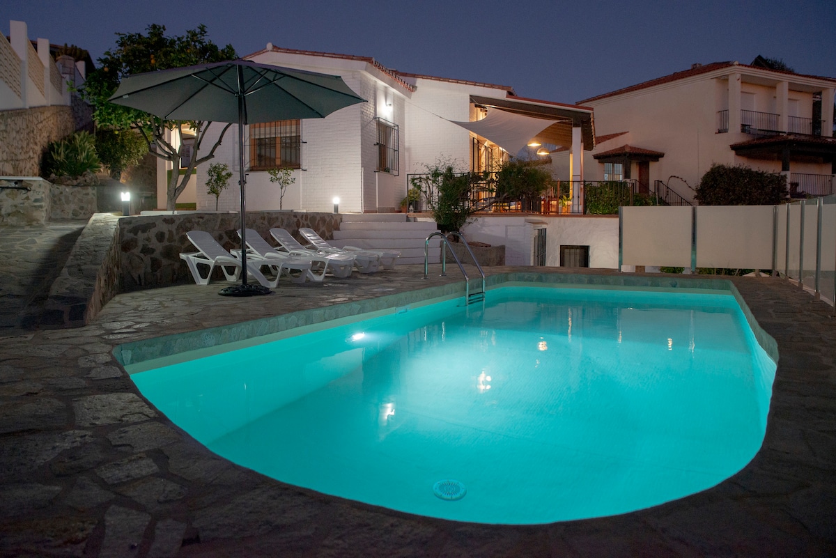 NUEVA SALA DE CINE Vivienda de estilo rústico situada en la periferia de Alhaurín el Grande. Destaca por su estilo robusto de construcción, con unos elaborados techos de madera de pino. Se configura como una parcela totalmente cercada por grandes muros que, junto con su piscina y exteriores, hacen que sea el lugar perfecto para unas vacaciones en familia o con amigos. Presenta una capacidad máxima de 12 personas. Cuenta con piscina privada, barbacoa, wifi gratuito y Smart TV.