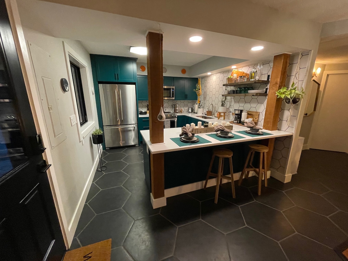 El recién renovado HoneyComb HideAway (HCHA) ofrece a los huéspedes una moderna estancia en una casa de campo en Eugene. Este santuario para amantes de las plantas cuenta con una cocina completa, baño privado completo y magníficas vistas a la colina de la propiedad de 12 acres de Lorane Highway, GoatsBeard HomeStead. Ya sea que estés aquí para una escapada de cata de vinos, una aventura al aire libre o un evento de la Universidad de Oregón, o una boda, el HoneyComb HideAway se asegurará de satisfacer tus necesidades.