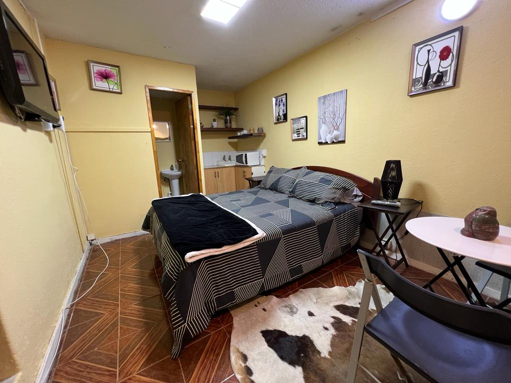 Acogedor espacio con acceso y baño privado ubicado en sector residencial y seguro de Villa Alemana en el límite con Quilpué. La habitación cuenta con una cama de 2 plazas. Entregamos ropa de cama y toallas, la habitación es amplia y soleada y tiene una mesa que puede funcionar como escritorio y un closet. Contamos con hervidor, microondas, frigobar, platos, tazas y servicios. Además, hay un dispensador de agua, té y azúcar para amenizar la llegada de nuestros huéspedes. No recibimos niños.