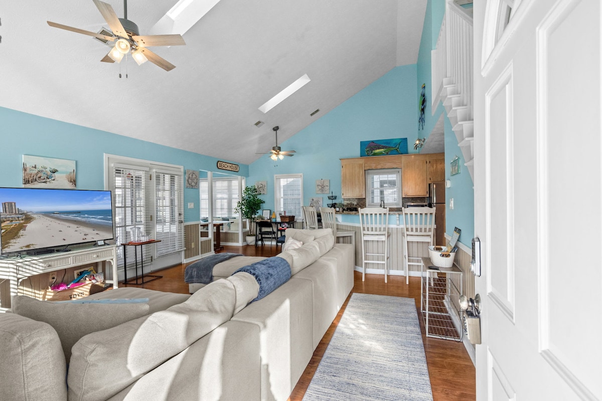 ¡Guau! Este lugar tiene de todo: frente al mar, balcón enorme, playas prístinas, varias piscinas, restaurantes, campo de golf cercano ¡Bienvenido a OceanWave, tu mejor escapada frente al mar ubicada en el conocido edificio de North Hampton de Kingston Plantation! ¡Este NO es tu condominio promedio! Este condominio recientemente renovado (2025) ofrece comodidad de lujo, diseño refinado e impresionantes vistas panorámicas frente al mar. ¡Su amplio balcón con ventanas de piso a techo en cada habitación te acerca la playa!