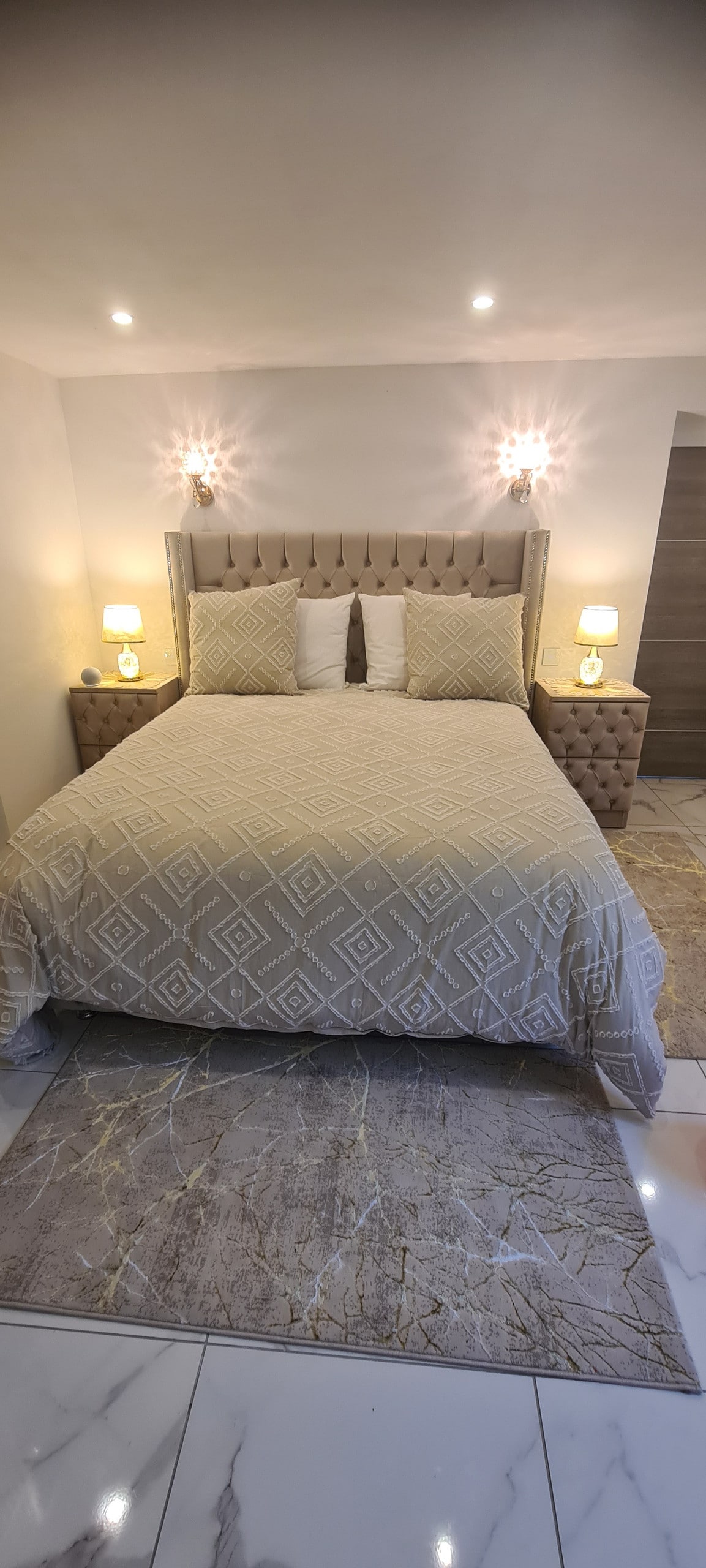 Le encantará la decoración elegante de este alojamiento con encanto. En la planta baja de nuestra casa , tendría un acceso completamente independiente. Este alojamiento está equipado para 4 personas. Tiene una habitación con una cama para 2 personas y un sofá cama en el salón. También ofrecemos la opción Love Room (velas, globo de helio, pétalos de rosa) por 50 euros adicionales (incluidos los gastos de limpieza de 50 euros). Dispondrá de un espacio en el exterior.