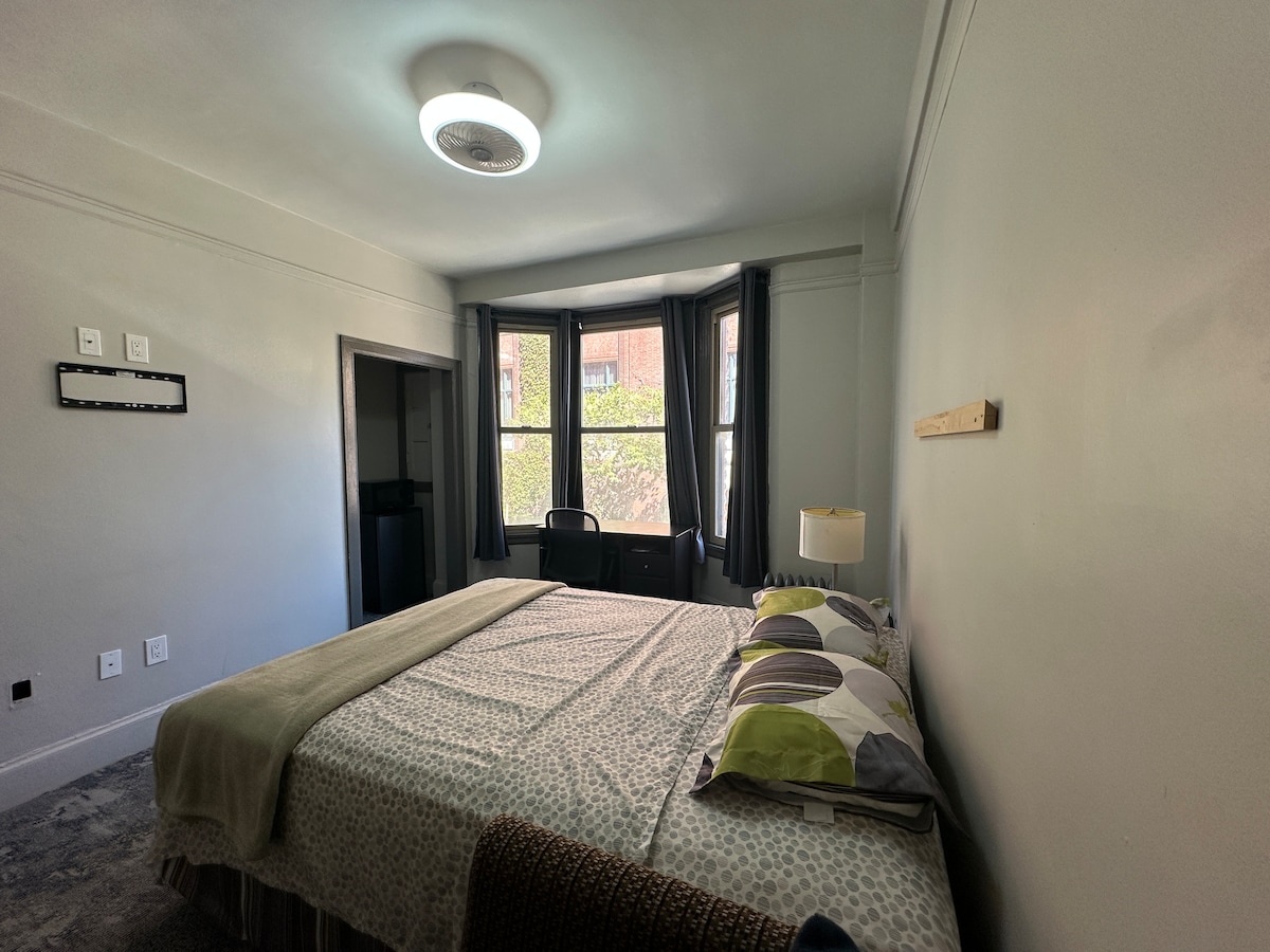 Esta habitación tamaño queen con vistas a la calle Lombard tiene una cocina totalmente equipada adjunta. El dormitorio tiene una cama tamaño queen. La cocina separada tiene una cocina de gas/horno, nevera, microondas, mesa de comedor, platos y utensilios de cocina. Esta habitación tiene capacidad para dos personas (tres con una cama plegable: de $ 20 por noche) y es apta para perros. Se aplican tarifas por mascotas ($ 25 por mascota, por noche). Lo siento, no hay gatos. Ten en cuenta que el dormitorio tiene vistas a Lombard Street e incurre en algo de ruido del tráfico. Máximo de huéspedes permitidos: 2 huéspedes / habitación