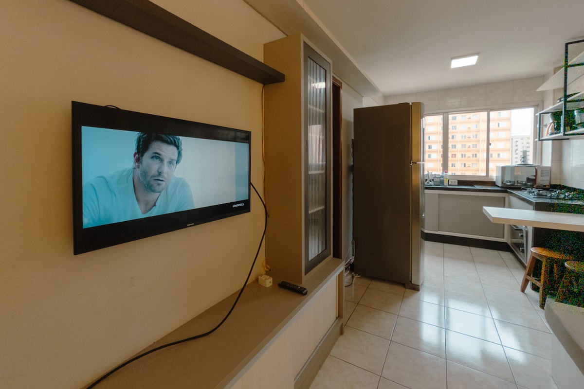 Amplio apartamento sobreloja - Wifi. Aire acondicionado - 3 plazas de estacionamiento privado. - 3 dormitorios (con toallas, fundas y sábanas) - 3 camas de matrimonio y 1 litera - Balcón con churanqueira - Sala de estar - 4 baños. - Cocina completa. - Comedor - Zona de servicio con ropa interior y exterior - Para reservas grandes (12 personas o más) proporcionamos camas para acomodar a todos en el apartamento, hay una tarifa de limpieza adicional de 200 reales.