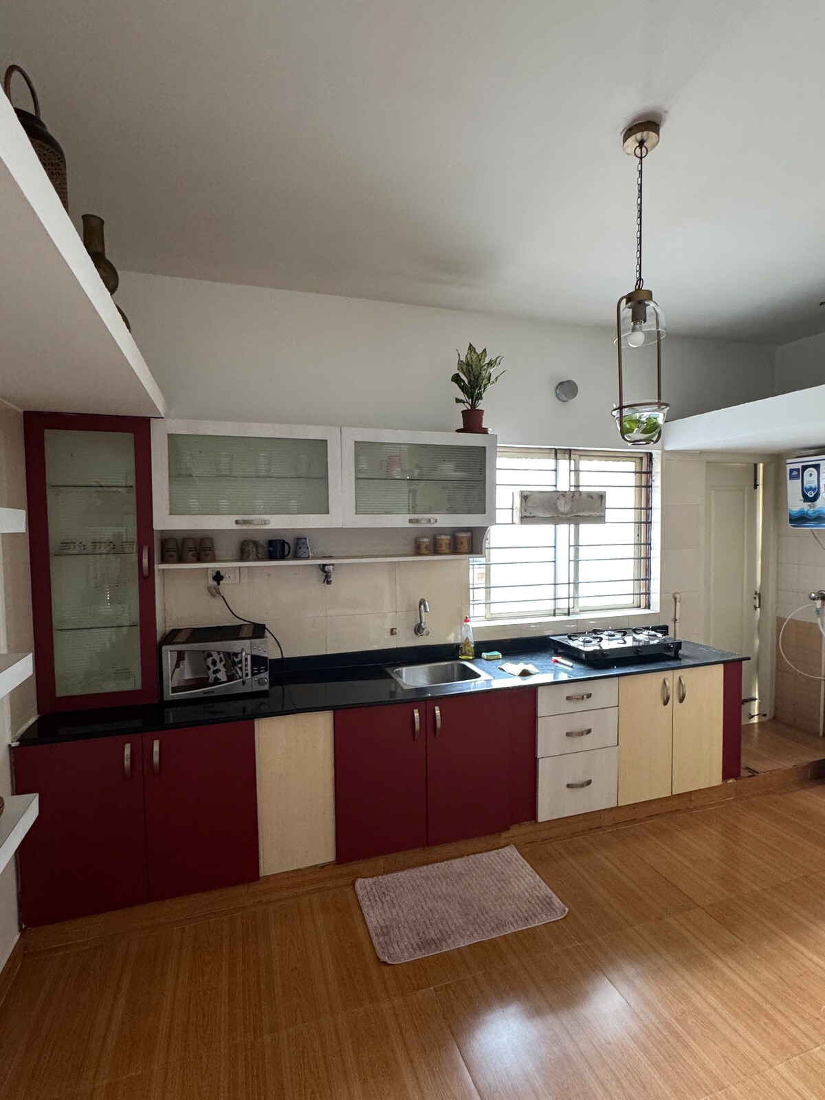Disfruta del lujo y la comodidad en este impresionante ático de tres dormitorios, idealmente ubicado en el corazón de Bangalore. * Áreas de estar espaciosas: relájate en el amplio área de estar, * Cocina y comedor totalmente equipados * Dormitorios cómodos: tres habitaciones hermosas con sábanas de primera calidad. * Baños elegantes: * Terraza privada al aire libre: relájate en tu propio espacio de jardín aislado. * Piscina y jardín en la terraza: date un chapuzón en la piscina serena. * Teatro en casa totalmente equipado: experimenta la excelencia cinematográfica
