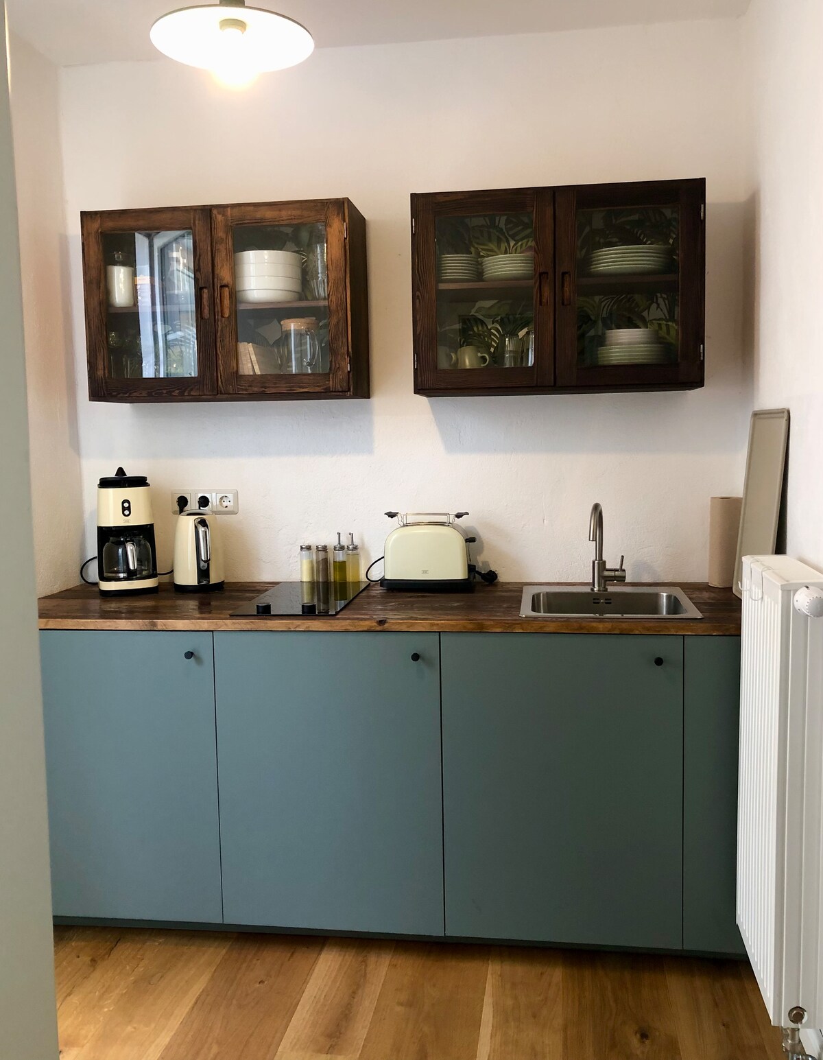 Welcome to this unique carriage house (90sqm). Built in 1922, it has been carefully restored and converted with high-quality materials. This romantic remise is located on Potsdam villa premises featuring old fruit and walnut trees, directly at the shore of Jungfernsee. In the summer, you can enjoy a swim in the lake before breakfast, if you wish. Only a stone’s throw away from the world-famous Glienicke Bridge. For decades during the Cold War, the bridge was the place where spies were exchanged.