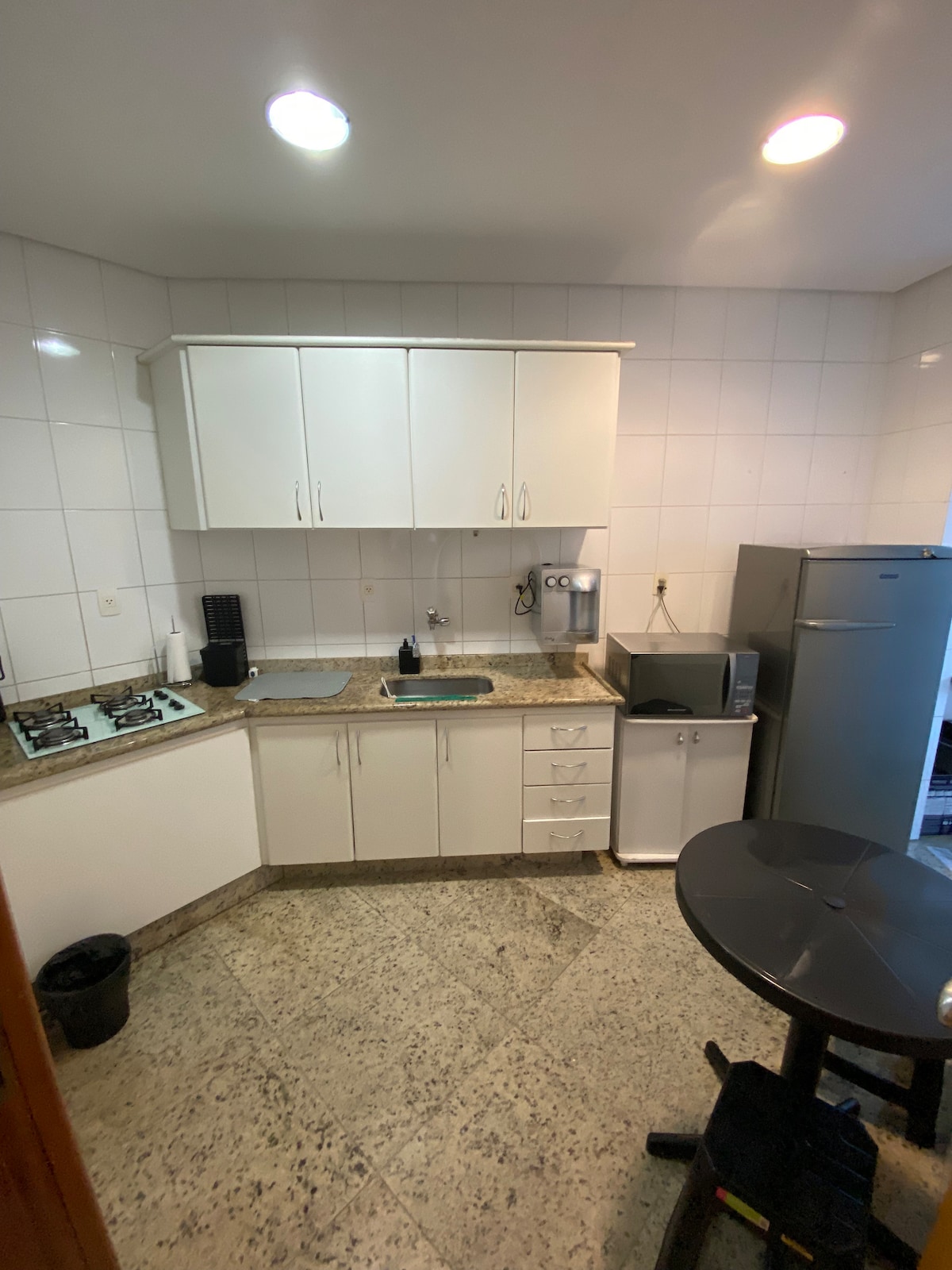 Sobre este espacio Espacio súper acogedor y organizado, sala, dormitorio con baño, cocina y balcón. Todo lo que necesitas para una estadía tranquila. Tiene una cama doble, TV, wifi, ventilador de techo, armario de cocina con utensilios, mesa con 3 sillas, estufa de 4 hornillas/bombona de gas y ducha eléctrica. Situado a 80 metros de la panadería, farmacia, supermercado, restaurante y hospital y está frente a la Praça Coliseu! No tiene garaje