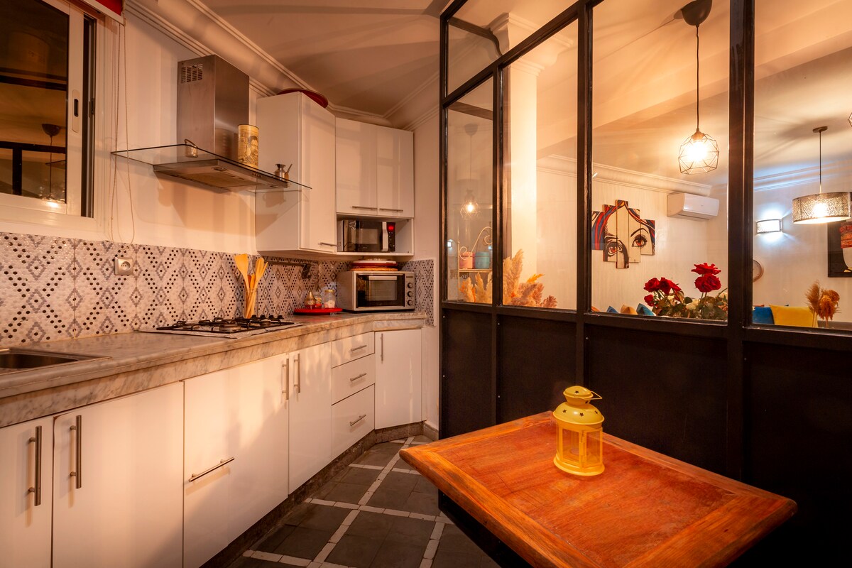 🌿 Votre havre de paix à Marrakech Offrez-vous une parenthèse de détente dans cette charmante villa privative, idéale pour un séjour en famille ou entre amis. Située en face des jardins d’Agdal, côté Waha, la villa bénéficie d’un environnement calme tout en étant à seulement 10 minutes du centre de Marrakech (5 km).