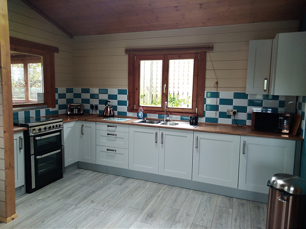 Rose Cottage en Castle-Ely-Mill abarca la planta baja de un antiguo granero de piedra. Accesible en silla de ruedas, con puertas interiores extra anchas y acceso mediante rampa al lateral de la propiedad. La espaciosa sala de estar de planta abierta tiene acceso directo a un patio privado con vistas al lago y a los jardines. Un sofá cama doble proporciona espacio adicional para dormir. El dormitorio se puede configurar con una cama tamaño king/dos camas individuales, además de una cama de invitados o una cuna. El baño es amplio y se puede proporcionar un marco de inodoro y una silla de ducha.