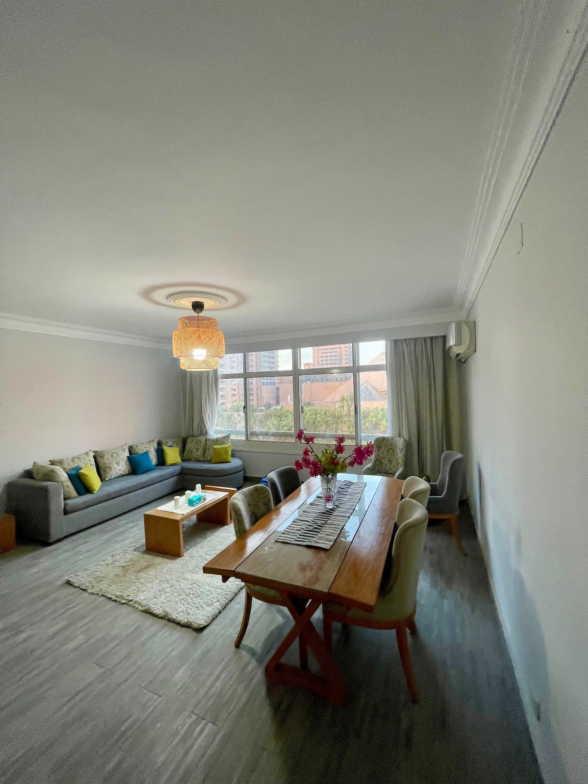 Nuestro moderno y acogedor apartamento de 2 dormitorios está situado en el corazón de Nasr City, una de las ubicaciones más deseables y céntricas de El Cairo. Se encuentra a poca distancia a pie (a menos de 5 minutos) del centro comercial City Stars, un popular centro comercial y de entretenimiento. El apartamento también está a solo 5 minutos en coche del centro de la ciudad y del distrito de Almaza, también cerca de muchos centros comerciales y restaurantes, por lo que es una opción ideal para aquellos que quieren estar cerca de la acción.