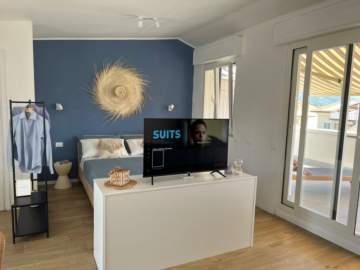 Monolocale di 35mq,mansardato con terrazza, è situato al 2 piano senza ascensore di una palazzina circondata da giardino condominiale che dista circa 350 metri dal mare e a 5 minuti dal centro di marina di massa.Dotato di collegamento wifi(20mega)e di AC, fuochi a induzione, frigo, lavatrice, macchina caffè a cialde dolce gusto.Vicino parcheggio pubblico, market, locali. parcheggio pubblico lungo la strada