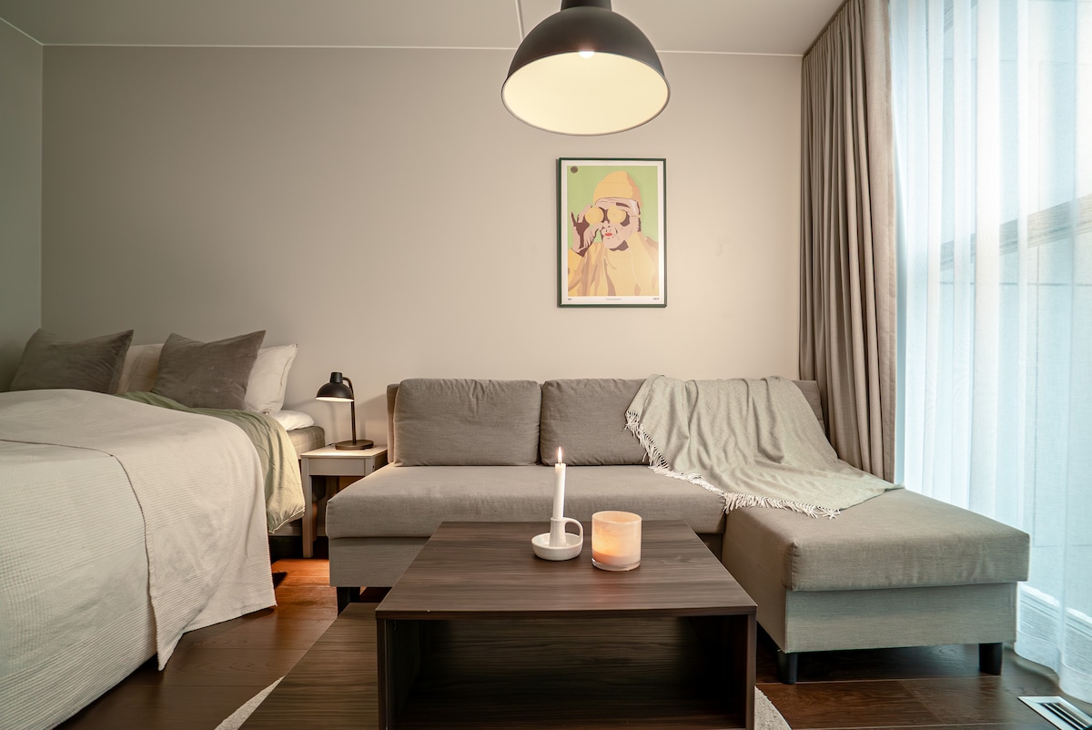 Disfruta de la sencillez de este acogedor apartamento tipo estudio, tranquilo y bien equipado, con una ubicación algo céntrica, donde también podrás disfrutar del patio privado al aire libre. Un trayecto de 15 minutos en tranvía te llevará a Saltholmen, la puerta de entrada al archipiélago de Gotemburgo, o a 25 minutos del centro de la ciudad. Está a poca distancia a pie de Röda Sten y Nya Varvet, donde encontrarás restaurantes con vistas al puerto. La traducción al sueco es funky, no es un loft, está abajo y el espacio para tus maletas es solo eso. 🤷♀️