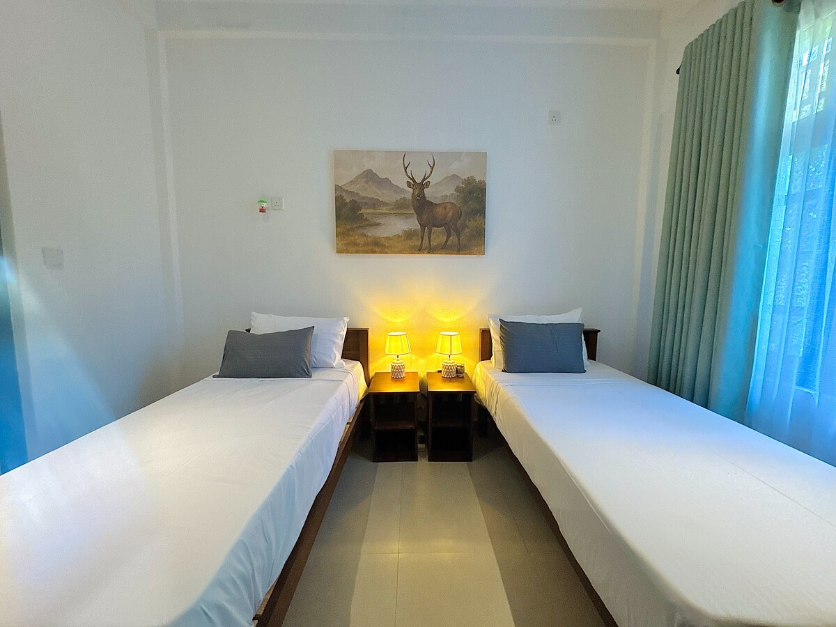 El hotel está situado en el centro de Mirissa, entre Coconut Hill y Secret Beach. En la carretera principal, pero lo suficientemente lejos como para garantizar la paz y la tranquilidad. Puedes llegar a las principales atracciones por las que es famosa Mirissa en 10 minutos. La playa está a 900 m del edificio. Disponemos de 3 habitaciones con aire acondicionado de estilo moderno. Cada habitación tiene un baño privado con agua caliente. Ofrecemos un delicioso café de máquina. Desde la terraza panorámica se puede ver la puesta de sol. Le invitamos a reservar y disfrutar de los encantos de Mirissa