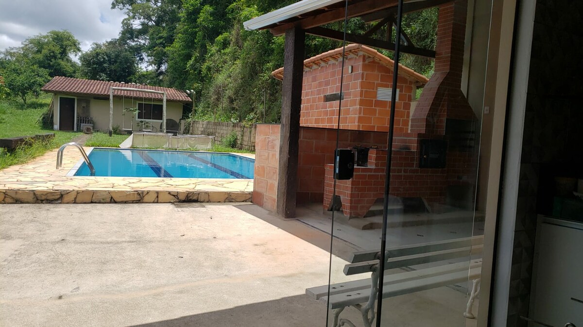 Relaxe com toda a família nessa tranquila chácara mineira, cercada de muita natureza e ao mesmo tempo em uma região central de Matias Barbosa, a apenas 10km de Juiz de Fora e 160km do Rio de Janeiro. Com fogão e forno a lenha, churrasqueira, espaço para as crianças brincarem, piscina de 90.000 litros, mesa de totó e de ping-pong, pula pula, em um ambiente tranquilo e acolhedor. A região é de clima bem agradável, favorável para a utilização da piscina na maior parte dos dias do ano.