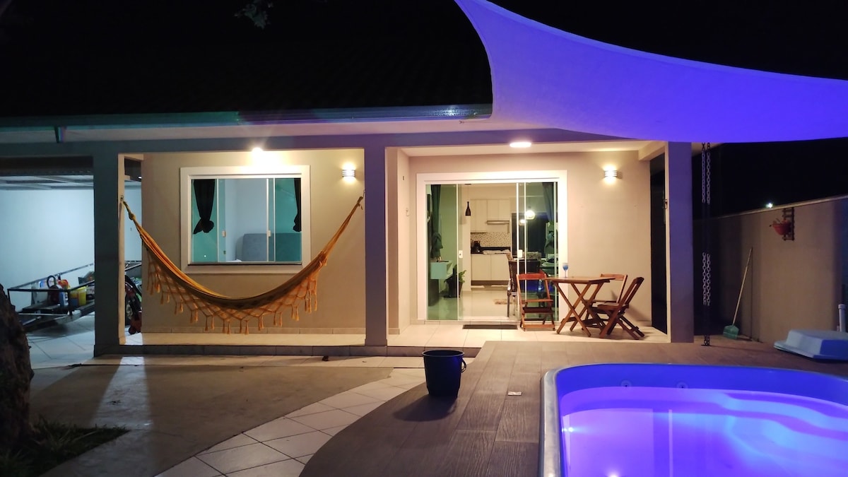 Lugar sencillo para gente sencilla. Chalet con piscina y zona de ocio y relax para la familia. Lugar tranquilo para descansar, divertirse y celebrar la vida. ATENCIÓN si tiene restricciones a los animales, tenemos perros y gatos en el patio, pero las perras están encerradas y los gatos son muy dóciles. Matinhos tiene muchas playas. Es un punto de surfistas. Bueno para la pesca. Mucha diversión o mucha tranquilidad, según los gustos. Recuerde traer forros/ropa de cama y artículos de tocador.