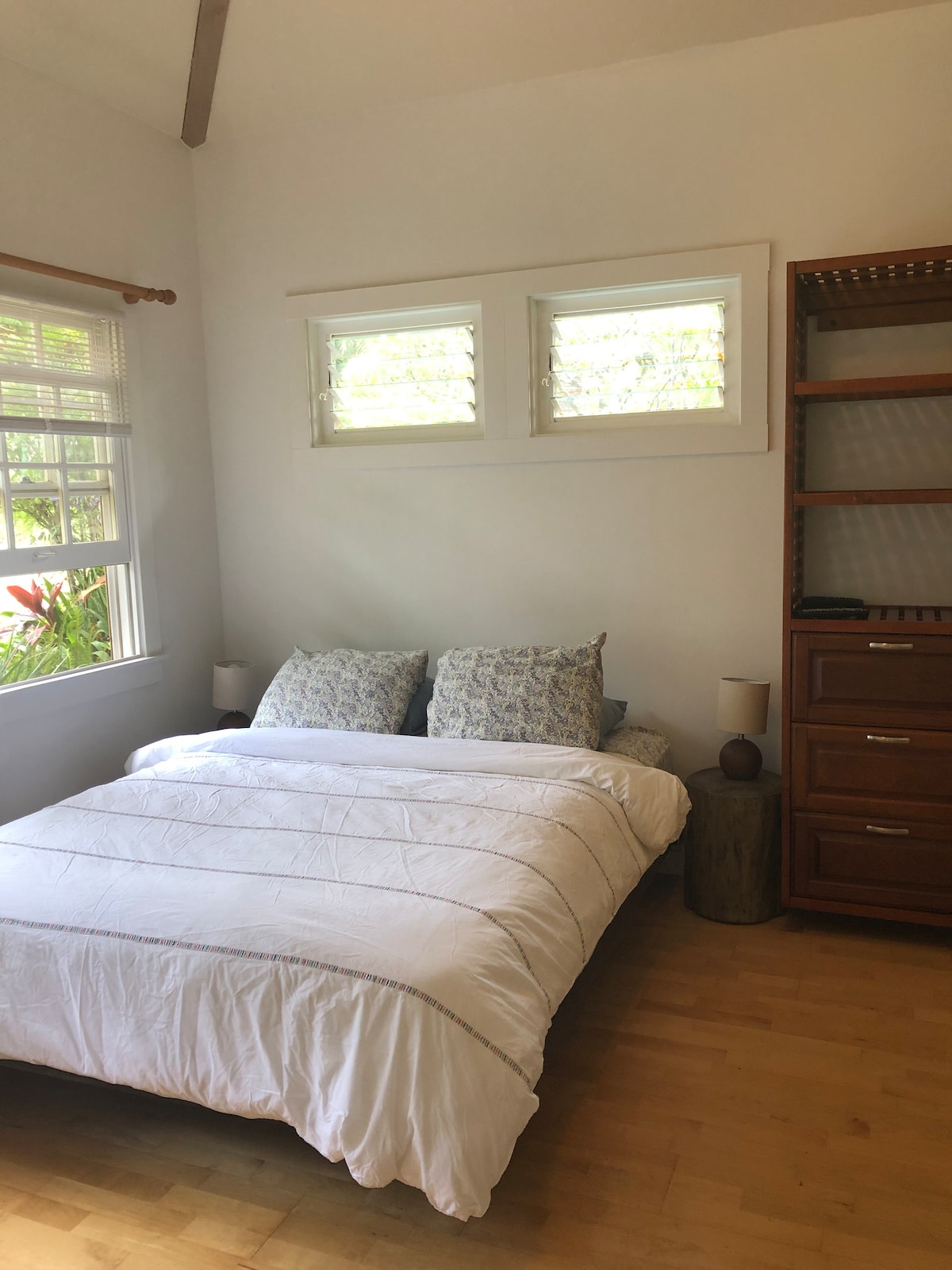 . Esta lista es para tu habitación Hana Bay View #5 ubicada arriba. Una de nuestras habitaciones favoritas, adecuada como habitación de luna de miel. Es un pequeño espacio privado adecuado para parejas o un maravilloso espacio individual con una nueva cama tamaño king. Esta habitación prémium es una de las tres que ofrecen vistas a la bahía de Hana y al amanecer. BAÑO PRIVADO en el pasillo. LOS IMPUESTOS, tarifas y todos los costos están incluidos en los precios de AirBnB.