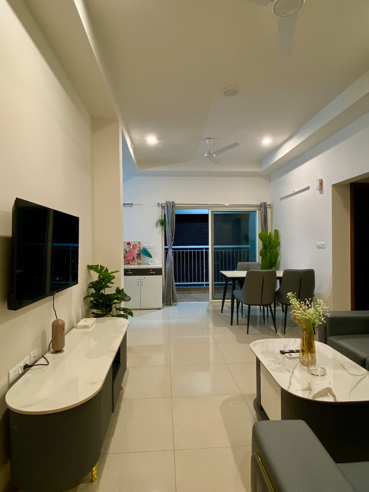 Bienvenido a su serena escapada 🦋 Disfruta de las vistas del horizonte desde este 2BHK en el piso 13 🏡La propiedad cuenta con una acogedora sala de estar, TV inteligente, comedor, cocina completa, 2 dormitorios amplios con aire acondicionado, 2 baños y lavadora. 👩🍳 incluye a la empleada doméstica 🛜El wifi de alta velocidad y la seguridad cerrada lo hacen ideal tanto para estancias cortas como largas. 📍Situado en una zona tranquila con jardines, senderos, zonas de juegos infantiles, piscina y fácil acceso a restaurantes y tiendas.