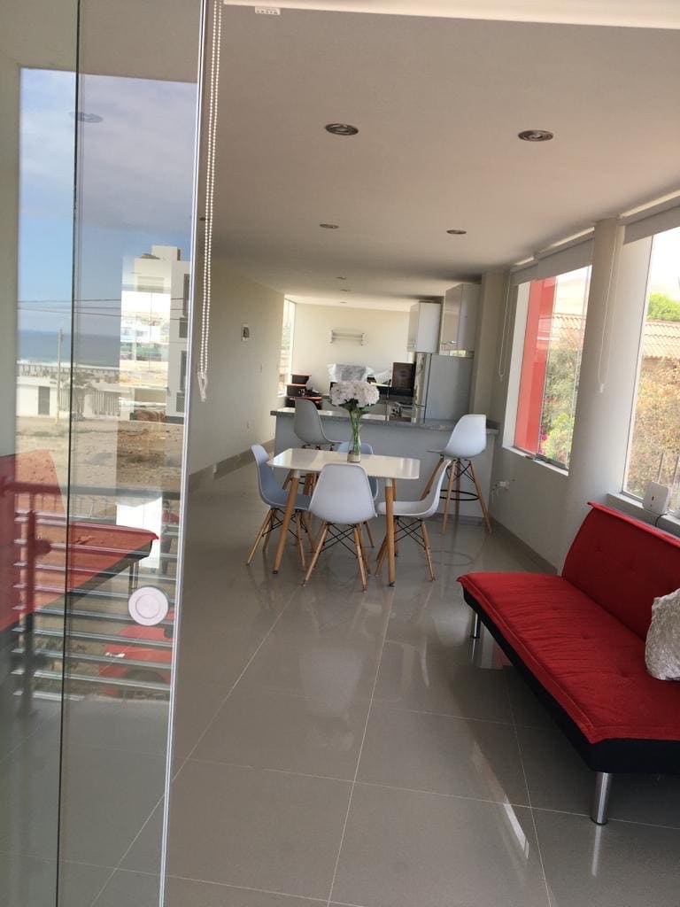 Dpt amoblado y equipado, muy amplio y cómodo, bien ventilado y con gran luminación. Uso compartido de una piscina amplia, parrilla y terrazas. Cuenta con una cocina americana con reposteros altos y bajos, una sala comedor con un plasma. Dos habitaciones amplias, una habitación con una cama de 2plz + camarote y la otra habitación cama de 2plz + dos camas de 1.5plz, Además tiene un sofá cama de 2plz. Aforo 8 personas, pueden ingresar más con un precio adicional.