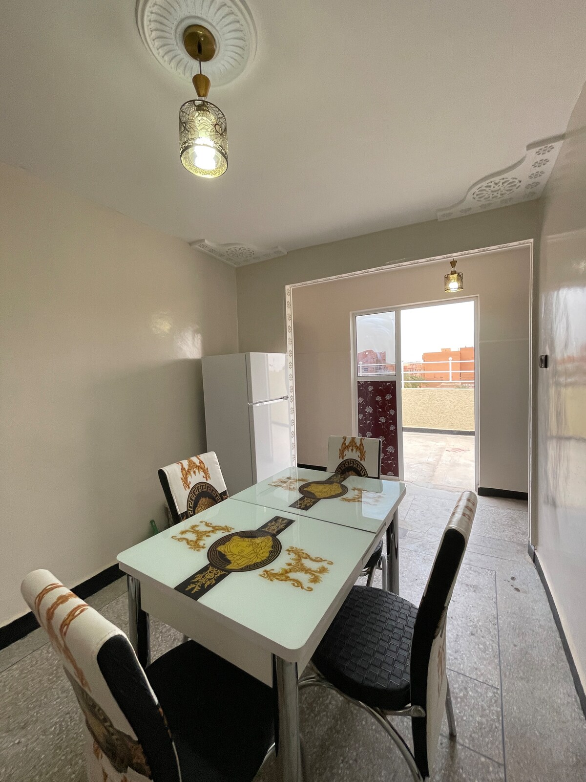 Alojamiento elegante, perfecto para familias o grupos de amigos que deseen descubrir la ciudad de Fez. Situado en pleno centro de la ciudad cerca de todas las tiendas (estación de tren, tienda de comestibles, consulado de Francia, centro de la ciudad,…). Apartamento individual, situado en la primera planta de una casa con entrada independiente y segura. Completamente renovado a estrenar y contiene todas las comodidades necesarias para pasar una agradable estancia. 2 dormitorios 1 cama doble, 2 camas individuales + camas en la sala de estar (sofás)