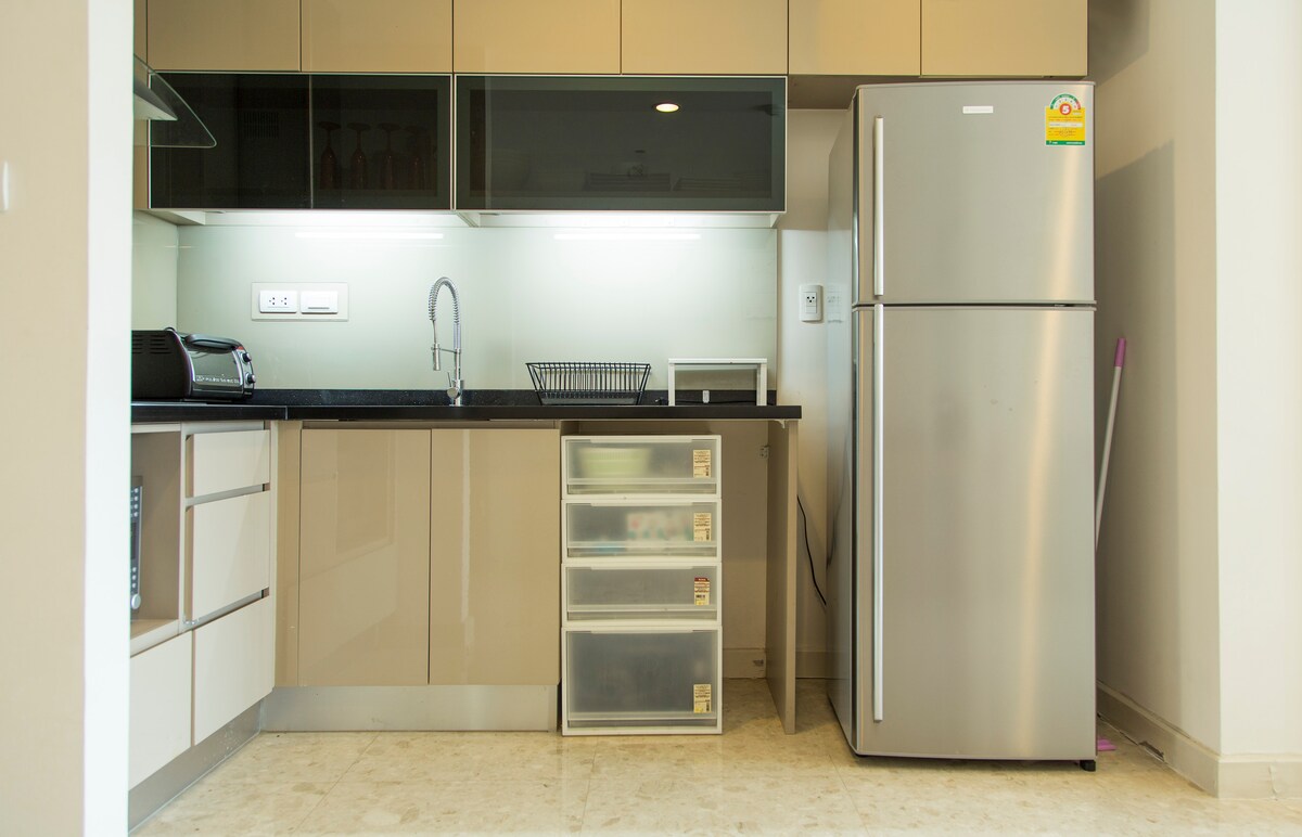 El alojamiento está recién renovado y decorado con un estilo minimalista. La superficie total es de 78 metros cuadrados, dividida por una puerta corrediza de cristal, para un dormitorio de relax y cómodo y una sala de estar con cocina, mesa de comedor y TV. La conexión wifi cuenta con canales de televisión de fibra óptica. Es toda la habitación para la ocupación. Puedes utilizar la piscina y otras instalaciones. La piscina es buena, pero el gimnasio es pequeño. Cumple y respeta el tiempo y las reglas cuando los uses. Como Beverly Tower es el pequeño condominio de baja altura, por lo que te pedimos que actúes de buena manera y no hagas ruido excesivo que pueda perturbar la privacidad y el disfrute tranquilo de los demás propietarios. Envía un mensaje de texto y te responderemos lo antes posible Este loft está justo al lado de las concurridas calles de Bangkok. Explora los alrededores para encontrar tiendas de conveniencia y supermercados, o camina durante solo 10 minutos hasta la estación de tren aéreo Nana BTS para aventurarte a Siam Square. Nuestro alojamiento está cerca del transporte público. Puedes caminar durante 10 minutos, recomendado por la mañana y por la noche, hasta la estación Nana BTS (Skytrain) que puedes tomar el camino de entrada a Siam Square (Siam Paragon y Siam Center) pasando Central Chidlom y Central World y más allá al mercado de fin de semana (estación de Chatuchak), y si tomas la ruta de salida, te llevaría a la estación de Asoke, que está intercambiando para MRT (Subway) y justo en la estación, Terminal 21, tiendas populares y complejos de alimentos. Al ir más lejos en BTS hacia la estación Promphong, llegarás a Emquartier/Emporium Shopping Complex, y más allá a la estación Thonglor, que es el área más moderna y vibrante para comer, beber y entretenerse. A tu primera llegada, el guardia de seguridad tendrá una pequeña consulta contigo antes de dejarte entrar en las instalaciones. No te preocupes, se informará al guardia de tus horas de llegada y período de estancia.