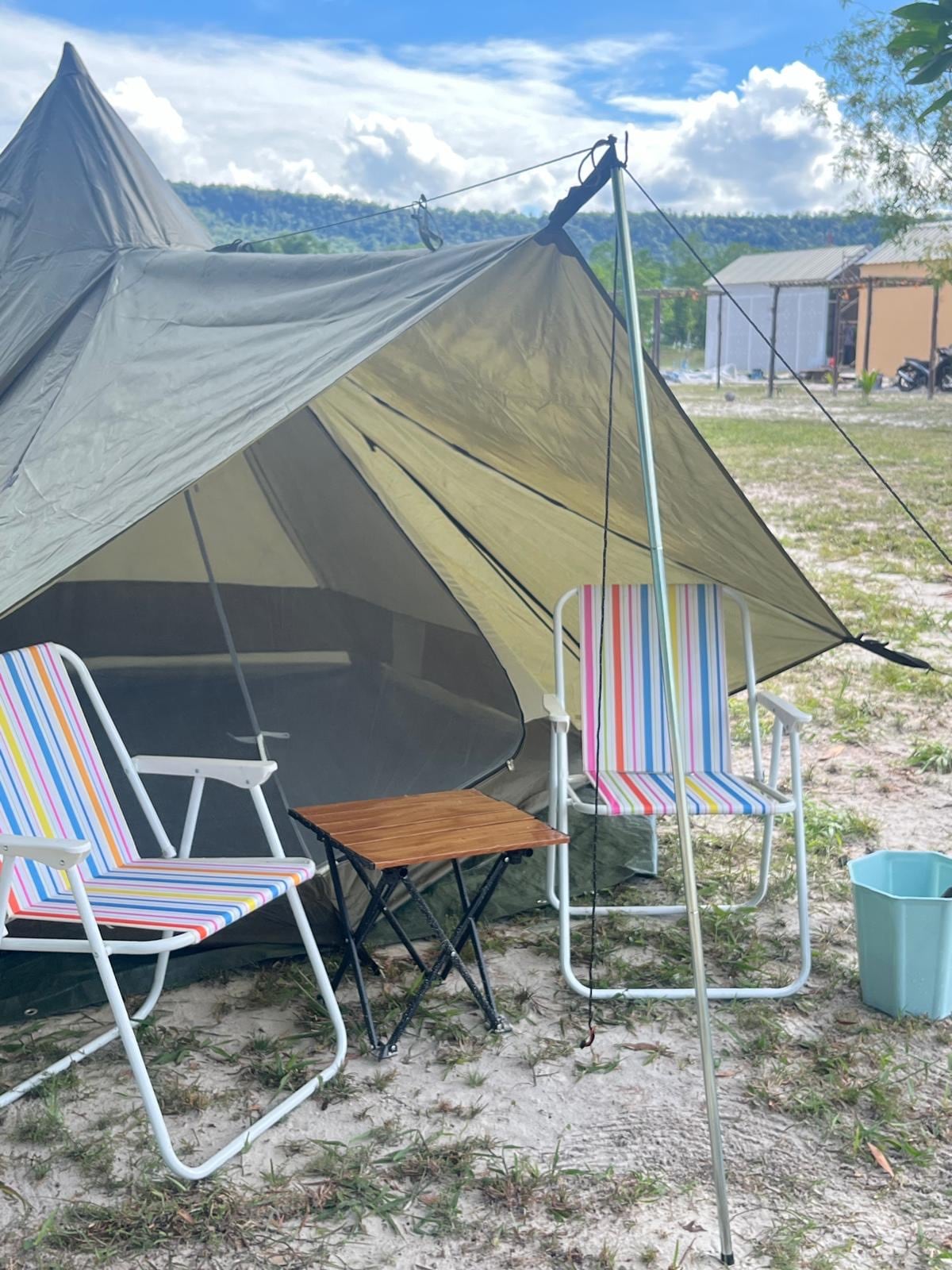 Escápate de la ciudad y disfruta de un retiro romántico en medio de un tranquilo bosque de pinos. Nuestra acogedora tienda de glamping viene con aire acondicionado, ropa de cama de calidad hotelera y una barbacoa privada con carbón y utensilios incluidos. Pasa el día haciendo kayak, montando en bicicleta o simplemente relajándote bajo los árboles, y luego reúnete alrededor de la parrilla por la noche y contempla las estrellas. A solo una hora de Hanói, es el equilibrio perfecto entre naturaleza y confort.
