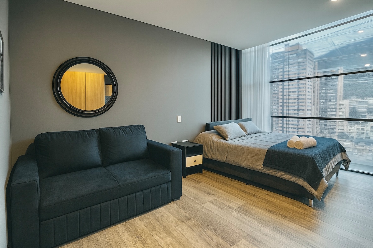 Recently renovated charming Studio. This place is strategically located: close to markets, museums, San Martin Mall, Monserrate, La Candelaria, La Plaza del Perseverancia, la Calle Bonita, National Park International Center (Financial zone), and countless restaurants, bars, and cultural activities that will make your visit to the city, an unforgettable experience. The building has a gym, coworking, pool area, and BBQ terrace on the top floor 360 View.