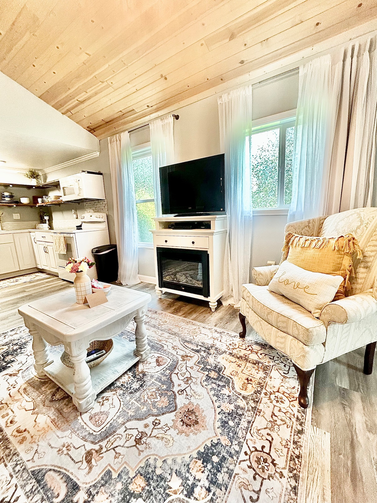 Fern Cottage se encuentra en la parte trasera de nuestra propiedad y cuenta con entrada privada y espacios al aire libre que incluyen asientos y fogata. El porche delantero tiene un columpio. Está totalmente amueblado. Hay una nevera debajo del mostrador en la cocina y una nevera de tamaño completo ubicada fuera de la puerta de tu dormitorio en el garaje. Se proporciona estacionamiento en la calle. NO se permite fumar. Sin excepciones. No más de 2 mascotas y no más de 50 libras (22,68 kg). NO SE ADMITEN MASCOTAS AGRESIVAS. Se aplica una tarifa por mascota de $25; por favor, sea considerado y pague al hacer la reserva.