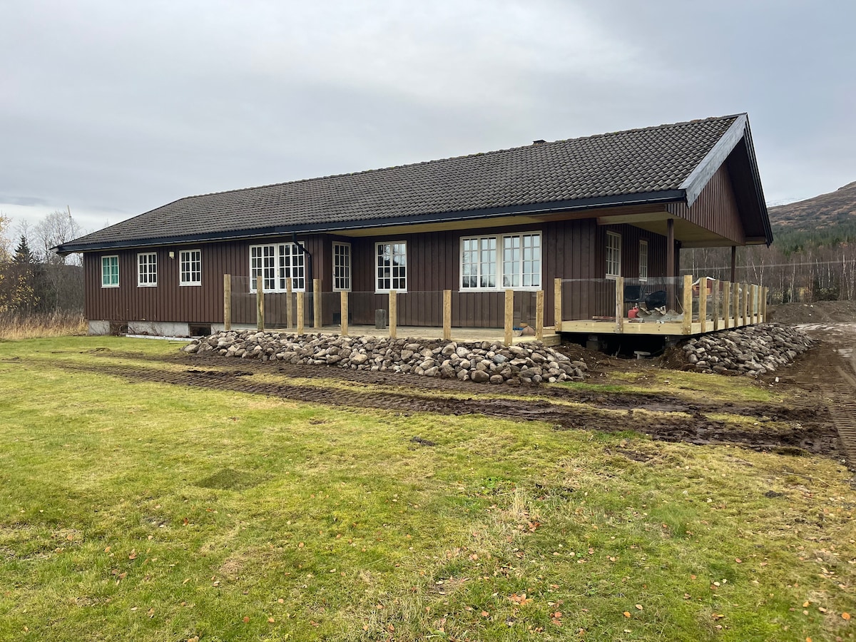 Casa de campo nueva (noviembre de 2019) en dos plantas con impresionantes vistas en la parte superior de Fagerlia, Meråker. Capacidad para 8-10 personas. Excelentes condiciones de sol y grandes chapados en el exterior donde se puede asar en la chimenea o la parrilla de carbón. Pendiente Slalom a pocos pasos e increíbles pistas de esquí y terreno de senderismo justo fuera de la cabaña. Servicios modernos. 4 dormitorios. 2 de ellos tienen una cama doble y 2 tienen una litera familiar (120/140 cm en la parte inferior). A 40 minutos de Stjørdal / aeropuerto y a aproximadamente 1 hora y 20 minutos de Trondheim. La limpieza se puede hacer por 900 kr