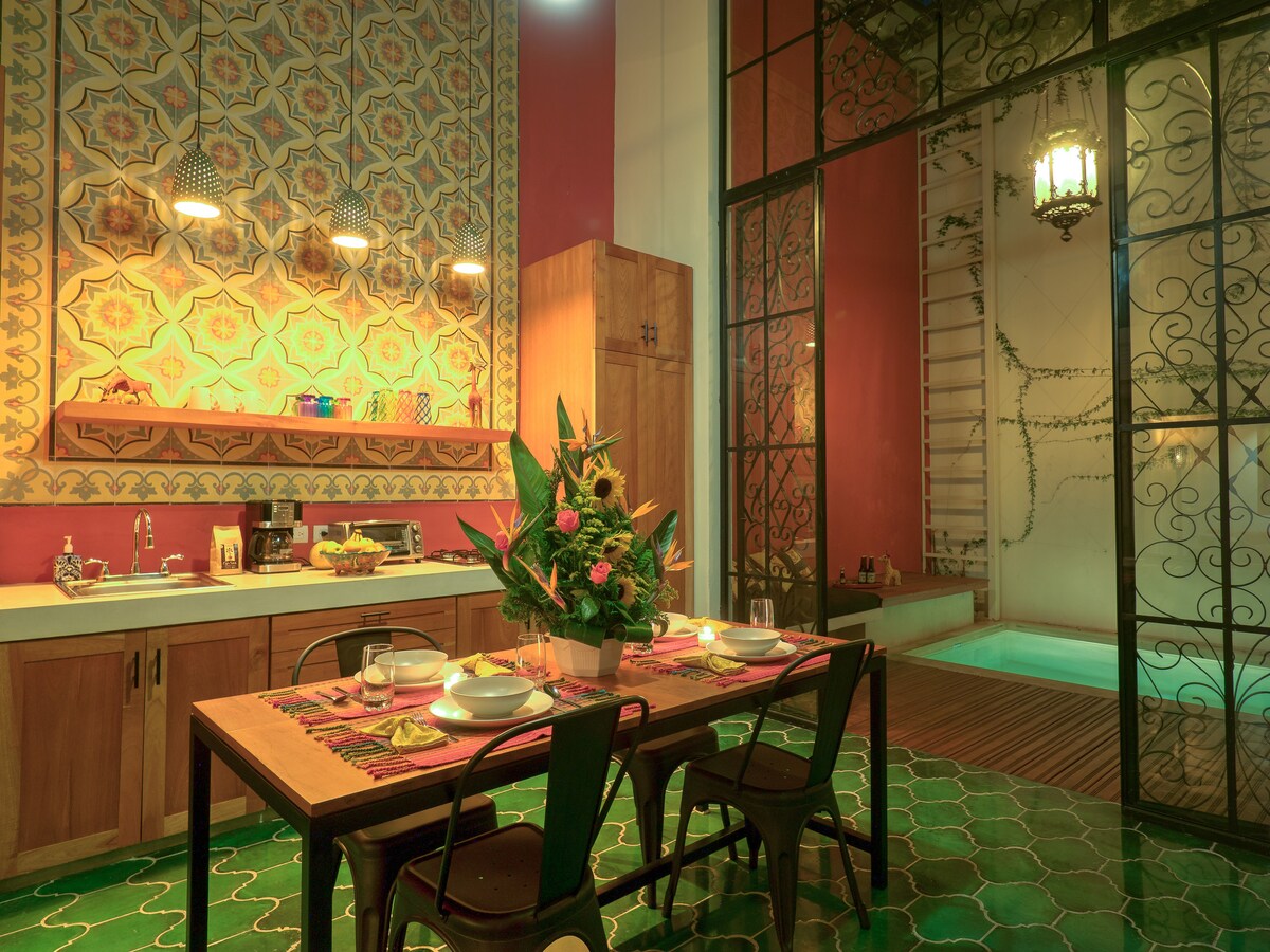 Amplio departamento dentro de una casa, perfecto para 2 personas. Ubicado al oriente del centro de Mérida, cerca del barrio del ChemBech a 20 minutos a pie del zócalo. Único en estilo y diseño, con acabados de lujo, garantizamos privacidad lejos del bullicio del centro y la sensación de estar en un oasis. Cuenta con sala, comedor-cocina equipada, habitación con baño, terraza techada, piscina-jardín. No se permiten visitas de personas externas a la reserva, o fiestas dentro del alojamiento.
