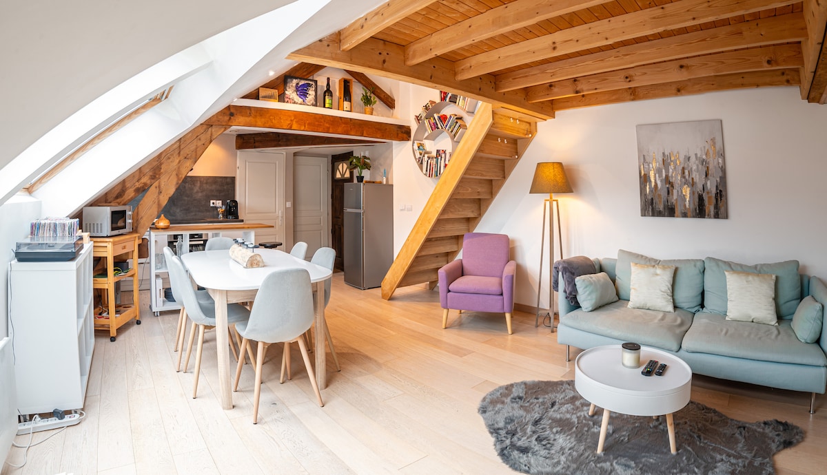 Venga a descubrir «Le Panorama» en pleno centro de Voiron, a dos pasos de las animadas calles peatonales. El apartamento está en la planta superior, orientación este con una espléndida vista de la estatua de la Vouise, los macizos de la Chartreuse, la Torre Barral, el antiguo hospital de Voiron, la Catedral... La decoración es moderna con un toque escandinavo.