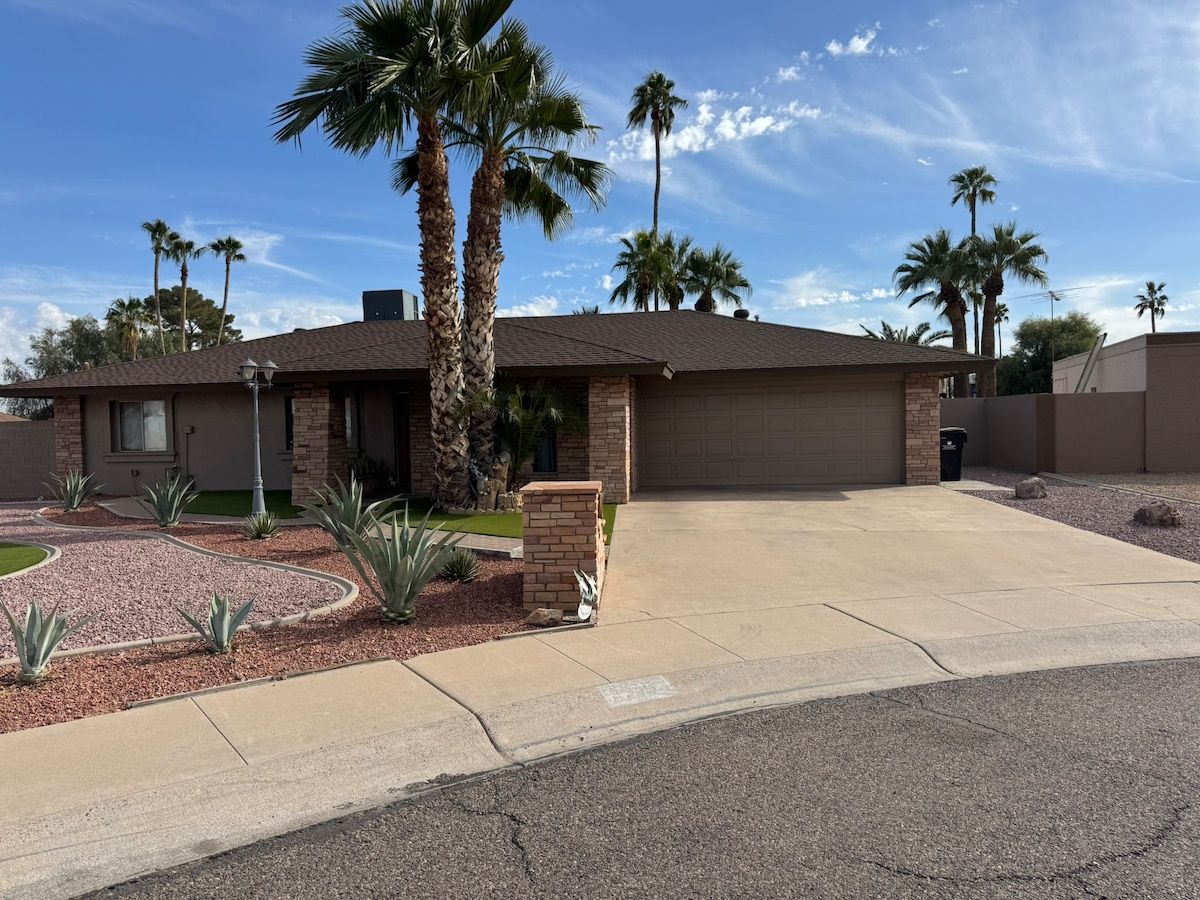 ¡ENVÍANOS UN MENSAJE SI BUSCAS UNA ESTANCIA DE MÁS DE 3 DÍAS SI LOS DÍAS APARECEN NO DISPONIBLES! Estamos ubicados en el noreste de Phoenix, en un barrio familiar seguro y tranquilo. Estamos a 1/2 milla de la 51 y 101, a menos de 10 minutos de los restaurantes de PV y a 20 minutos del aeropuerto Sky Harbor. Casa de huéspedes privada con capacidad para 6 personas con 2 dormitorios con 1 cama tamaño queen cada uno, 1 sofá cama tamaño queen en la sala de estar, 1 baño y cocina completa. Hay televisores en la zona común, así como en un dormitorio. NO SE ADMITEN MASCOTAS, NO SE PERMITEN FIESTAS, NO SE PUEDE FUMAR