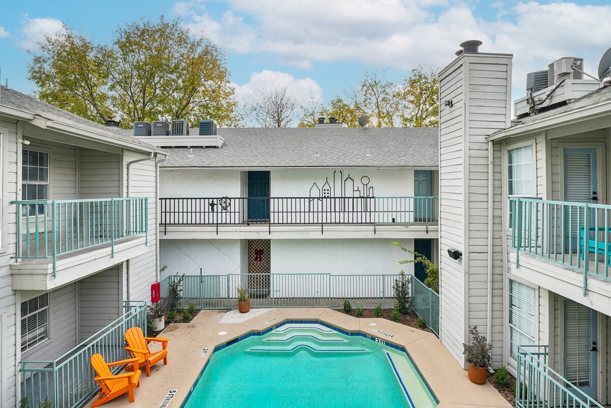 Elegante 1 dormitorio | Cerca de Greenville | Piscina al aire libre