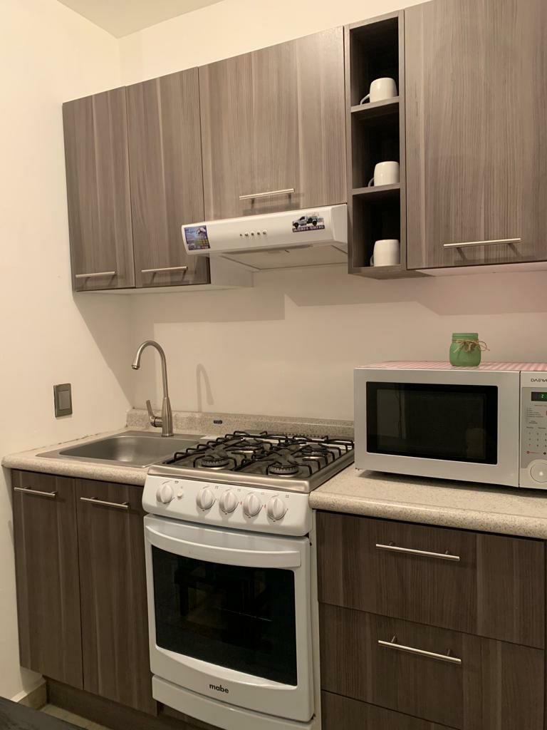 Disfruta de este bonito y recién renovado MiniLoft en Metepec. Esta muy bien ubicado a 4 cuadras de bodega aurrera. 5 minutos a town square, 10 minutos a galerías Metepec, 13 minutos a galerias toluca. 20 minutos al aeropuerto internacional de Toluca. 5 minutos a starbucks, todos los bancos. 10 minutos a sonora grill, sushi roll, wings army. Tiene una habitación con cama matrimonial y un sofa cama que se hace cama de tamaño queen aproximadamente. Baño con regadera, cocina integral y barra.