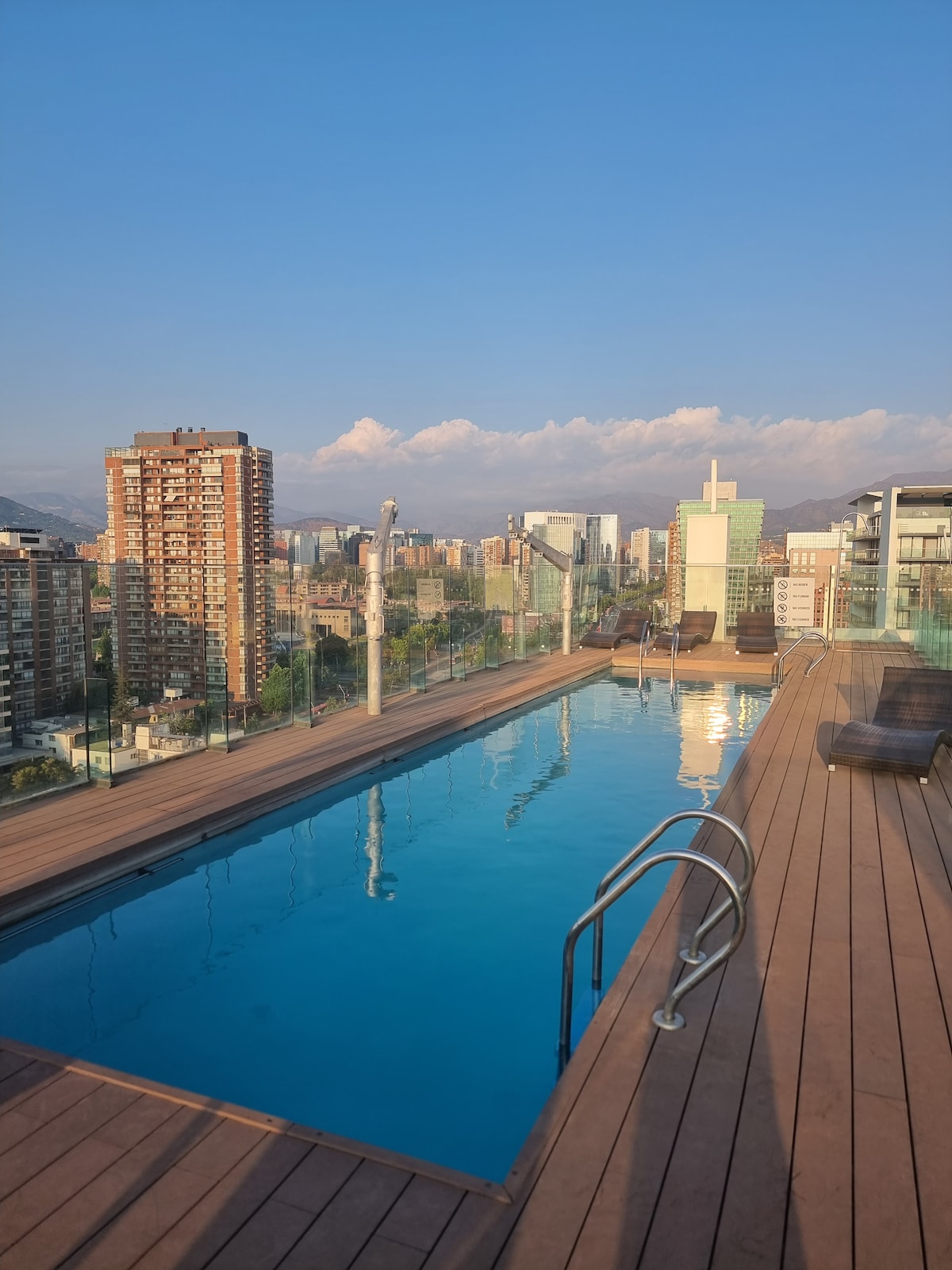 Disfruta de una estadía cómoda en este moderno departamento ubicado en Las Condes, uno de los barrios más exclusivos, seguros y mejor conectados de Santiago. A solo 5 minutos caminando del Metro Alcántara/Escuela Militar El departamento está equipado con aire acondicionado (frio/calor) y posee terraza. Además, la reserva incluye estacionamiento gratuito dentro del mismo edificio. El edificio ofrece una increíble piscina en el último piso, perfecta para disfrutar de una vista privilegiada.