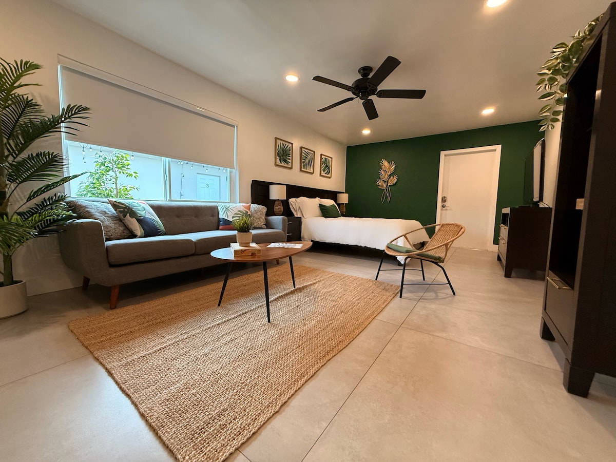 Disfruta de una estancia relajante en nuestro nuevo estudio en Miami, con un acogedor sofá, cocina equipada, baño privado y un encantador patio con sillas nido. Ubicado justo al norte de Coral Gables y a pocas manzanas de la Calle Ocho, ¡disfrutarás de la vibrante cultura local y del mejor café cubano de la ciudad! Nota: Se requiere un depósito de seguridad reembolsable de 200 $ para las estancias posteriores a la cirugía, y se aplica una tarifa de limpieza para las estancias de 14 días o más.