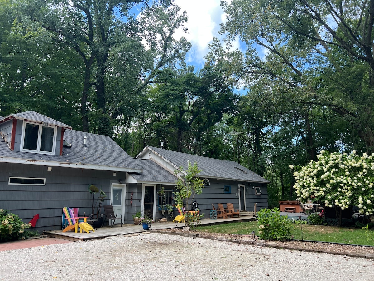 Escápate a una cabaña de los años 30 bellamente renovada ubicada en un acre boscoso en Harbor Country del suroeste de Michigan, a una hora de Chicago. Absorbe la belleza de la naturaleza en cada temporada viendo la vida silvestre o disfrutando de una de las impresionantes playas privadas del vecindario a 5-10 minutos a pie de la cabaña. Las actividades abundan en el nuevo parque a 3 cuadras de distancia: parque infantil, pickleball, tenis, baloncesto o toma un corto paseo en auto y explora las increíbles bodegas, cervecerías, restaurantes y tiendas de Indiana Dunes National Park & Harbor Country.