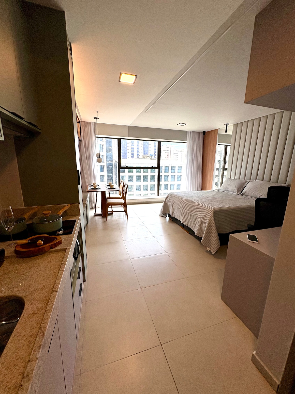 ⭐️⭐️⭐️⭐️⭐️ Bem-vindo ao Seu Lar em Boa Viagem! Excelente Localização, Studio completo, com cama de casal e sofá-cama, ar-cond Split, Smart TV, Wi-Fi, mesa de trabalho e de jantar, cozinha completa com cooktop, micro-ondas e utensílios, armário, espelho, móveis planejados, roupa de cama e banho. Recepção 24h, garagem, piscina, sauna, academia e mercadinho. Localização privilegiada: Shopping Recife (5 min a pé), praia (10 min a pé) e hipermercado em frente. Reserve agora e viva a experiência!
