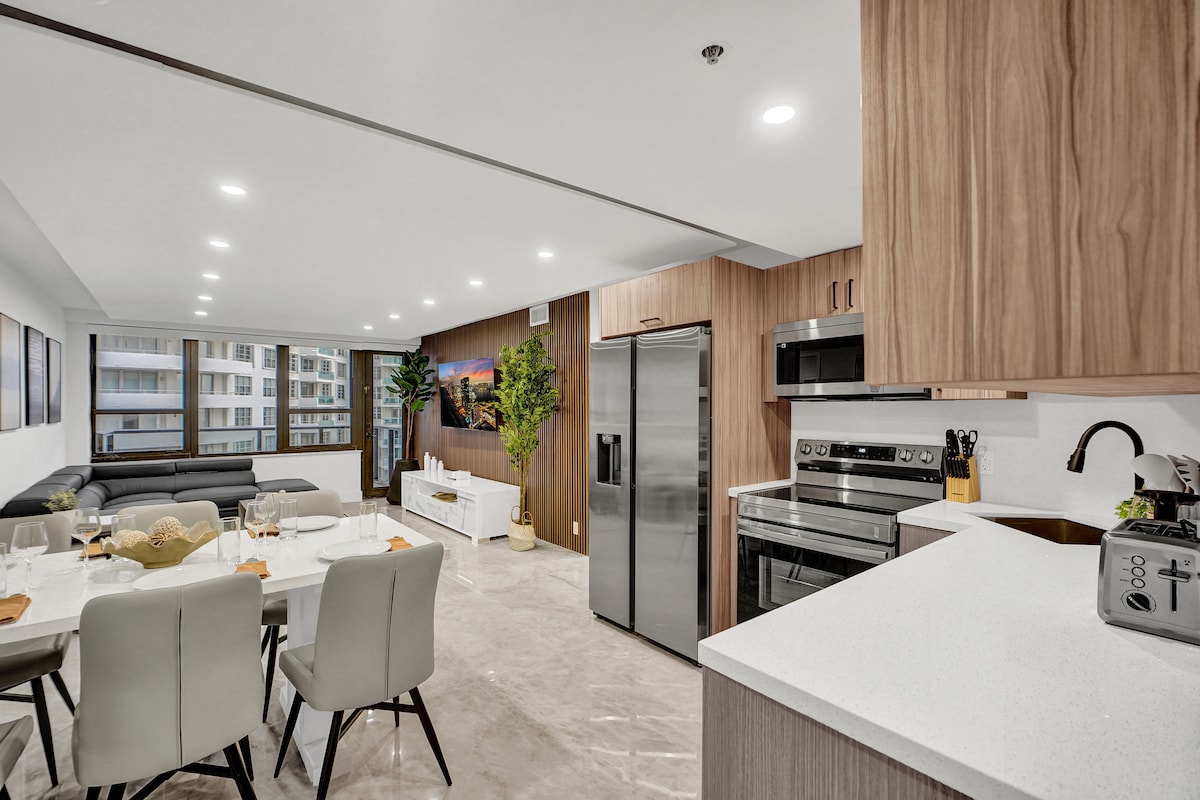 Apartamento de lujo de 5 estrellas ubicado en el famoso W Hotel. Amplia y moderna unidad de un dormitorio. Como huésped, disfrutarás de acceso completo a algunos de los servicios más lujosos : Terraza en la piscina de 🌴 2 acres con piscina infinita, jacuzzi y áreas de descanso Spa 🧖♀️ de clase mundial con salas de vapor, saunas y salas de tratamiento 💪 Gimnasio de última generación con vistas al agua Bares 🍸 en la azotea, restaurantes elegantes (como Cipriani y ADDiKT) y salones de moda ¡Pregunta por mis autos de alquiler/motos acuáticas/ y barcos también!