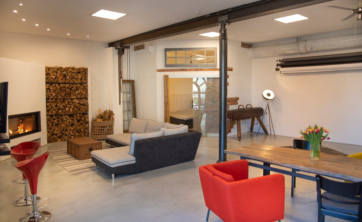 El loft de aproximadamente 120 metros cuadrados se encuentra en el segundo piso de un edificio de 3 viviendas y se distribuye en 2 niveles. El luminoso apartamento de nueva construcción ofrece mucho espacio para parejas, grupos o familias. Las ventanas pueden oscurecerse completamente con persianas exteriores. El acceso se realiza a través de la escalera común. TV, audio, wifi, LAN disponibles. También hay una selección de juegos de mesa para todas las edades, libros y DVD. No dudes en preguntar si tienes alguna otra idea o petición.