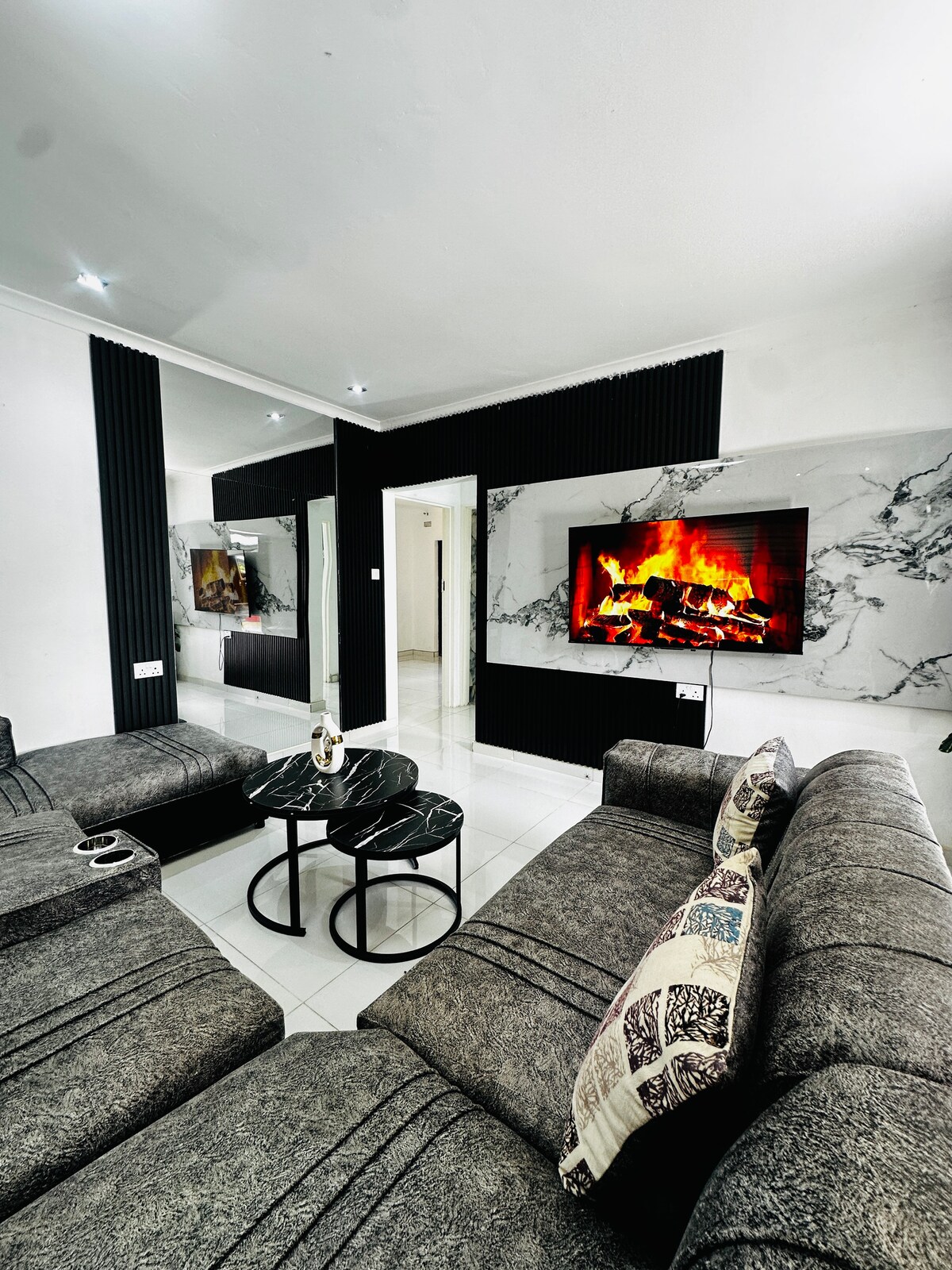 Enjoy a stylish stay in the heart of Bulawayo! This 2-bedroom apartment (sleeps 5) features 2 queen beds, a sofa bed, and a modern bathroom. Cook using a gas cooker, relax with hot water, and stay powered with backup solar. Unlimited, ultra-fast STARLINK WiFi — perfect for work, streaming, or gaming. FREE NETFLIX. Just a 5-min walk to Queen’s Sports Club, town centre and entertainment areas. UNFORTUNATELY, THERE IS NO SECURE PARKING ONSITE. THERE IS SECURE GUARDED PAID PARKING ($2/night) NEARBY